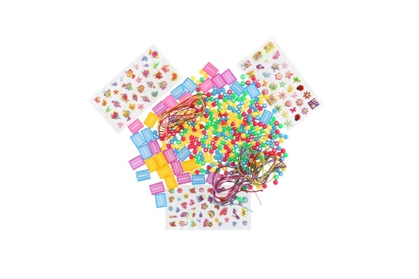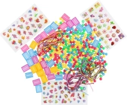 La confezione include tasselli quadrati, perline di plastica di varie forme e colori, elastici e adesivi in gommapiuma per rifinire uno stile unico. Un’ottima scelta per attività creative in casa, feste per bambini e come regalo.