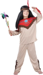 Elegante costume indiano per bambini per altezza 120–130 cm che trasforma ogni piccolo avventuriero in un eroe della tribù. Include blusa, pantaloni e fascia per la testa. Ideale per carnevale, feste in maschera e recite scolastiche.