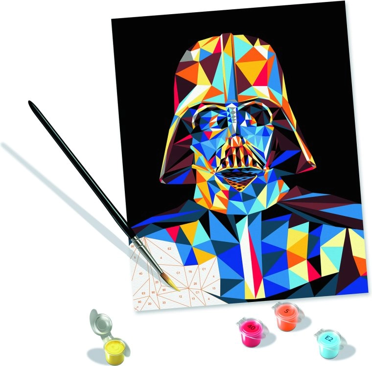 Con questo set diventerai pittore per un momento – basta seguire i numeri, dove ogni numero sulla tela corrisponde a un colore specifico. Grazie al modello di qualità e ai colori acrilici, creerai facilmente un dipinto con l’iconico tema di STAR WARS che, una volta asciutto, potrai inserire nella cornice inclusa.