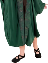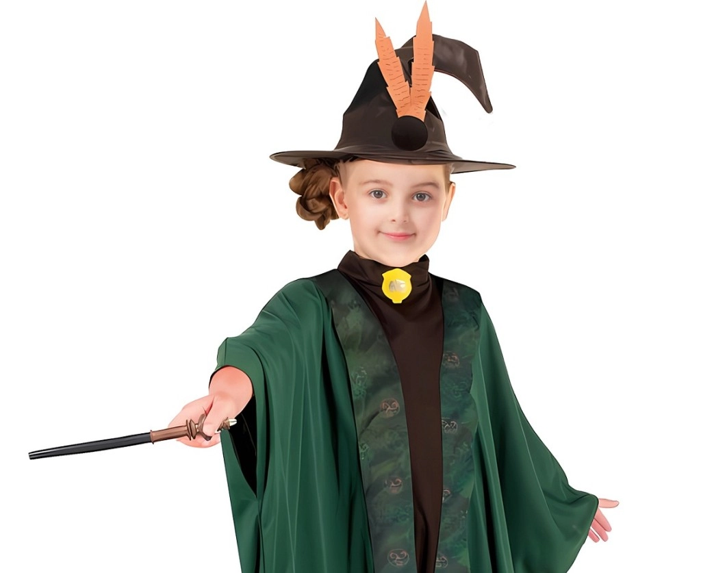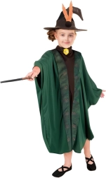 Questo elegante costume verde da mago o strega per bambini fa un figurone in ogni evento. Il mantello con maniche ampie dal taglio morbido e bordo decorativo è comodo da indossare e permette libertà di movimento durante magie e giochi di ruolo. Il cappello a punta con dettagli stilosi completa il look magico.