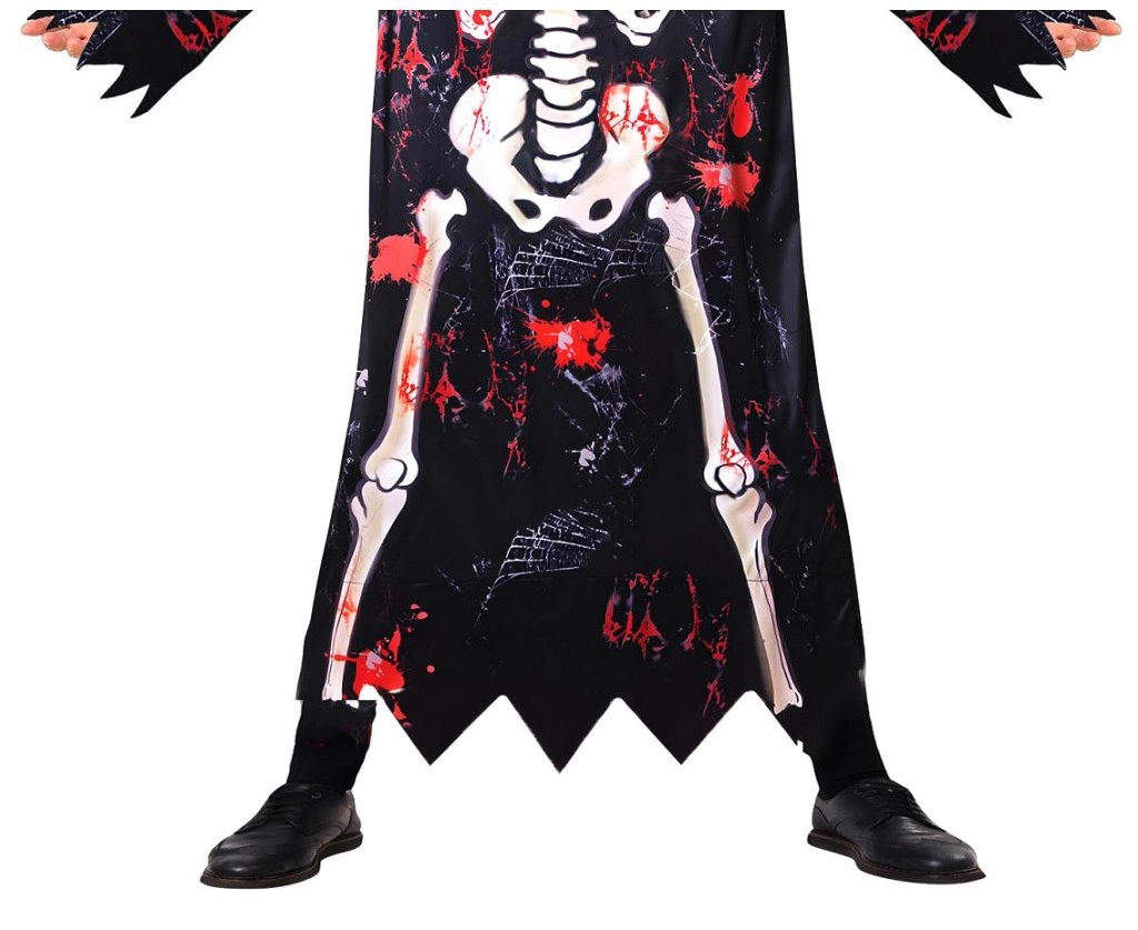 Il costume da scheletro per bambini è ideale per Halloween, Carnevale, recite scolastiche e feste a tema. Il mantello nero con stampa delle ossa e bordi “sfrangiati” crea un effetto autentico, mentre cappuccio e maschera si indossano facilmente e garantiscono una copertura affidabile del viso.