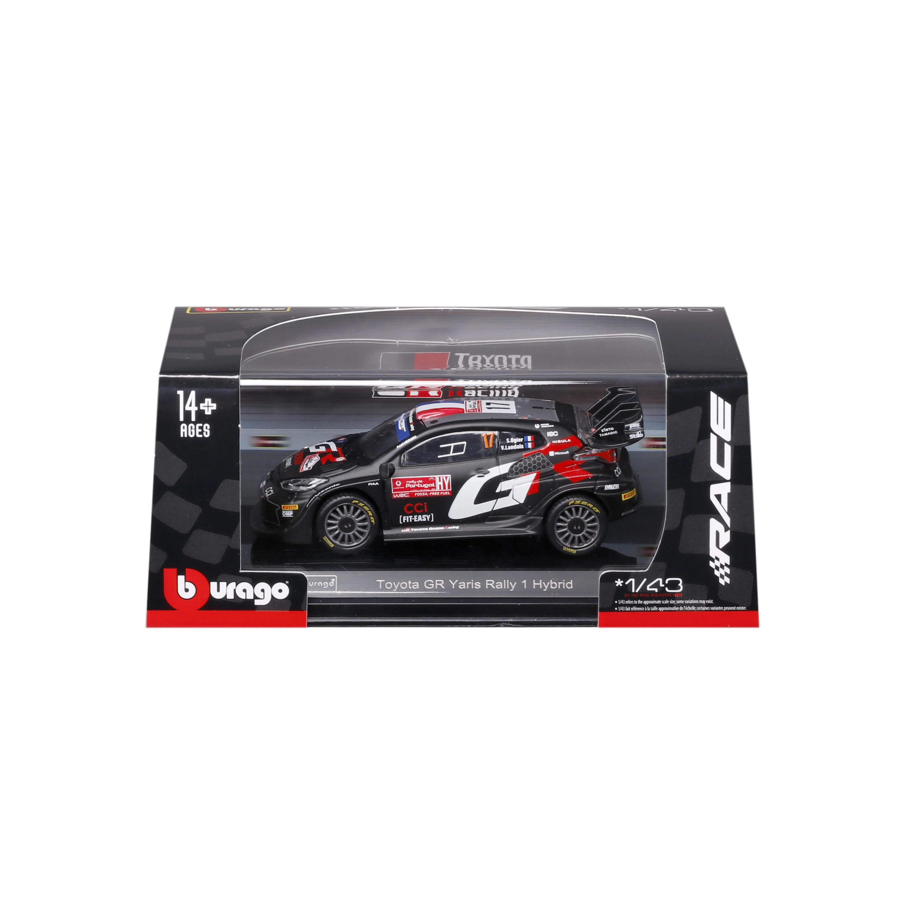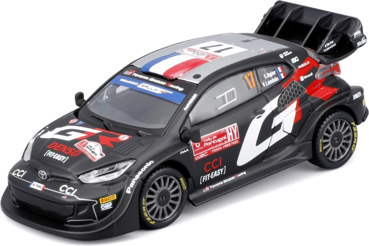 Questo modello in metallo realizzato con cura rappresenta la vettura da competizione TOYOTA GR Yaris Rally1 Hybrid #17 nella livrea dei piloti TOYOTA GAZOO Racing. Si distingue per linee affilate, stampa fedele degli sponsor e dettagli funzionali come ruote realistiche e grande alettone posteriore.