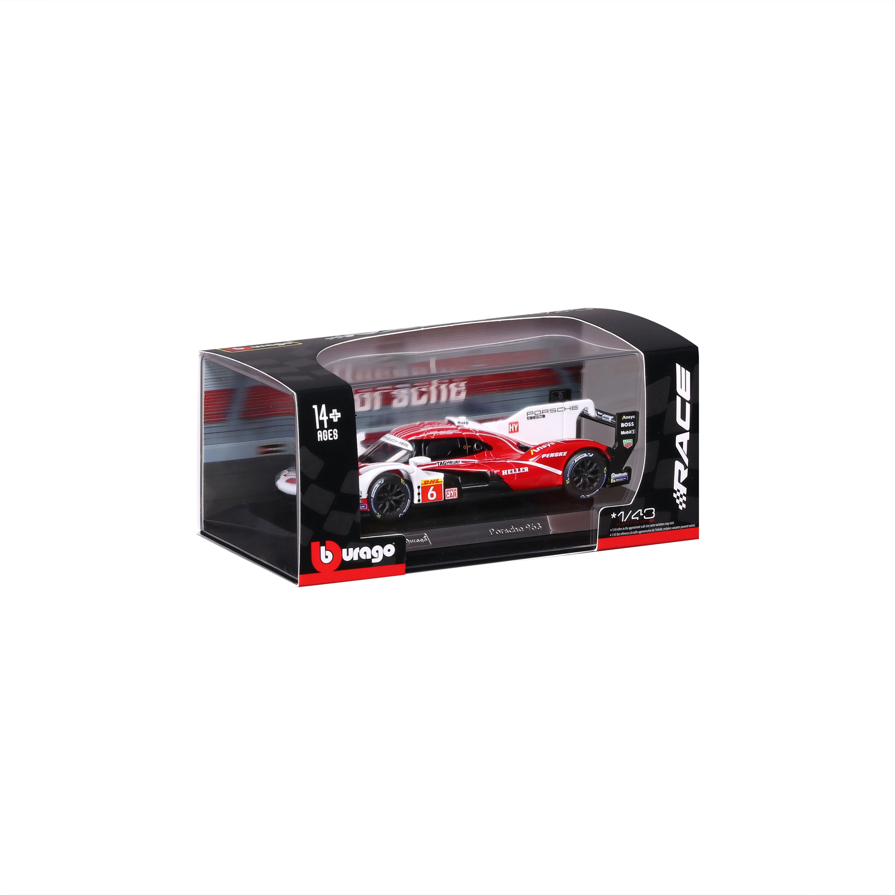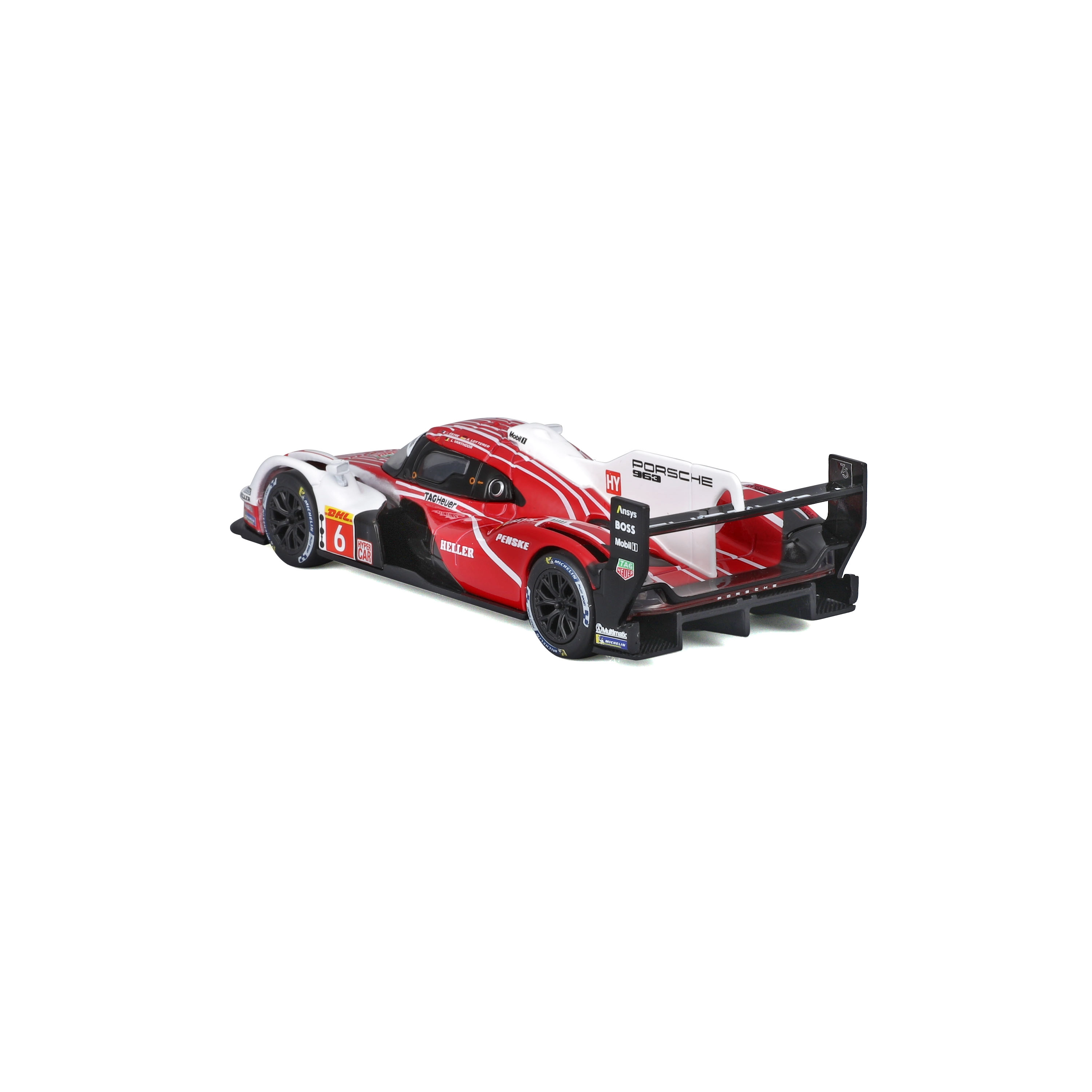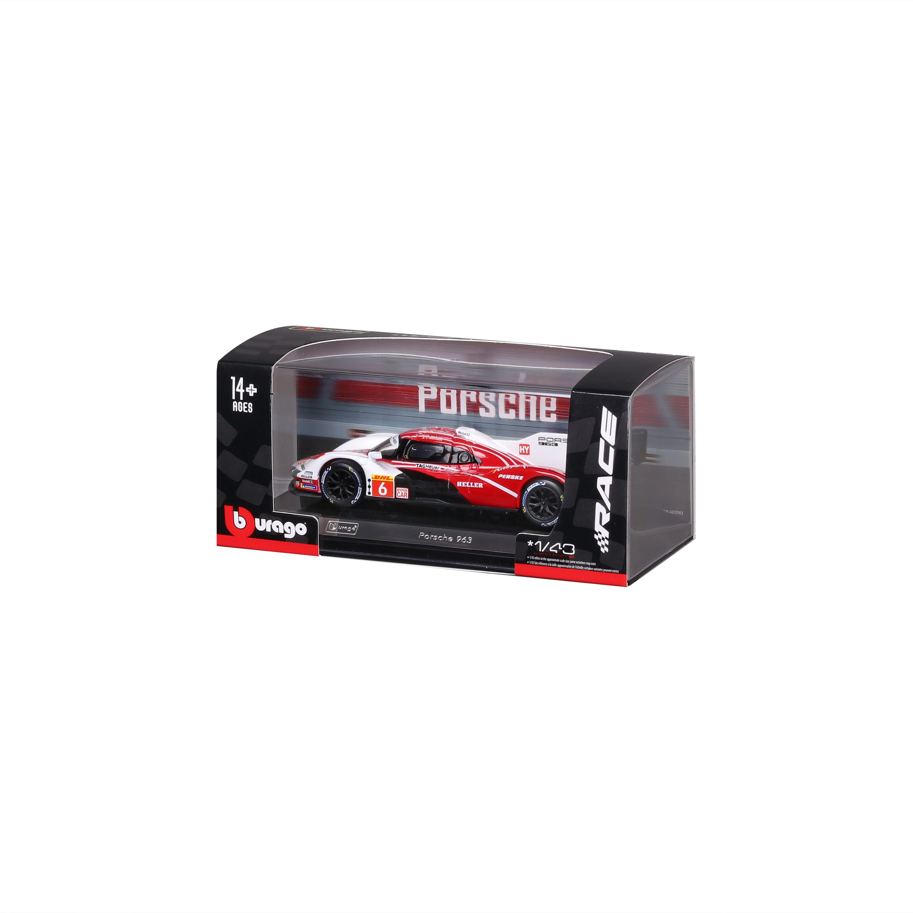 L’iconico prototipo Porsche 963 nella attraente livrea rosso‑bianca offre dettagli fedeli della carrozzeria, un alettone pronunciato e realistiche decalcomanie degli sponsor. Il modello in scala 1:43 è un’ottima scelta per collezionisti e appassionati di auto che apprezzano la qualità costruttiva e l’aspetto d’impatto.