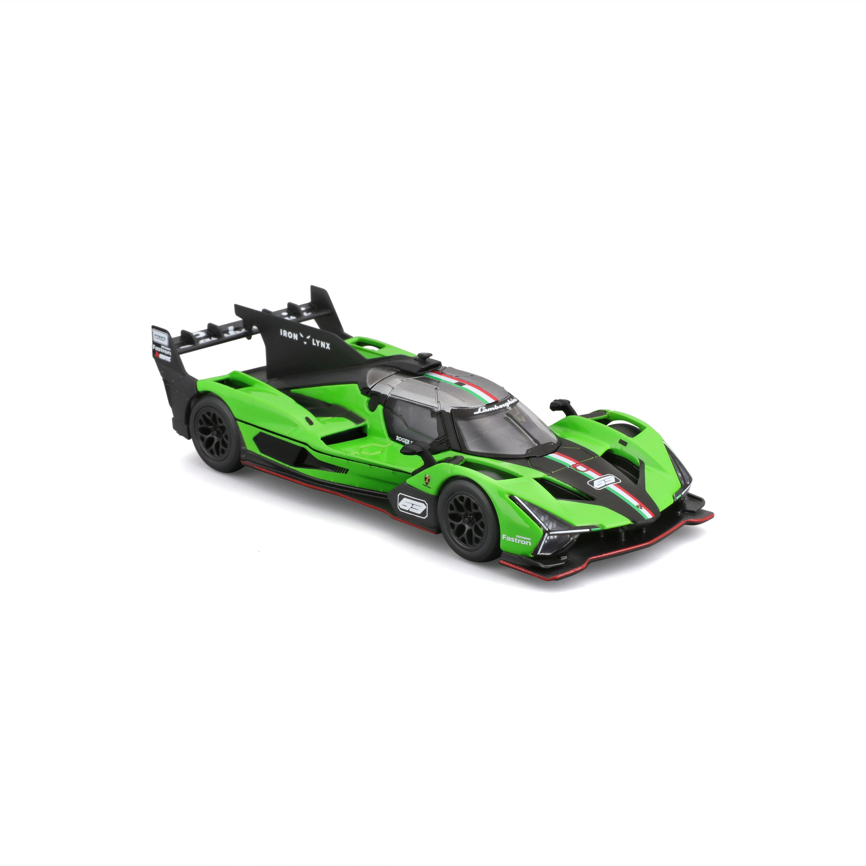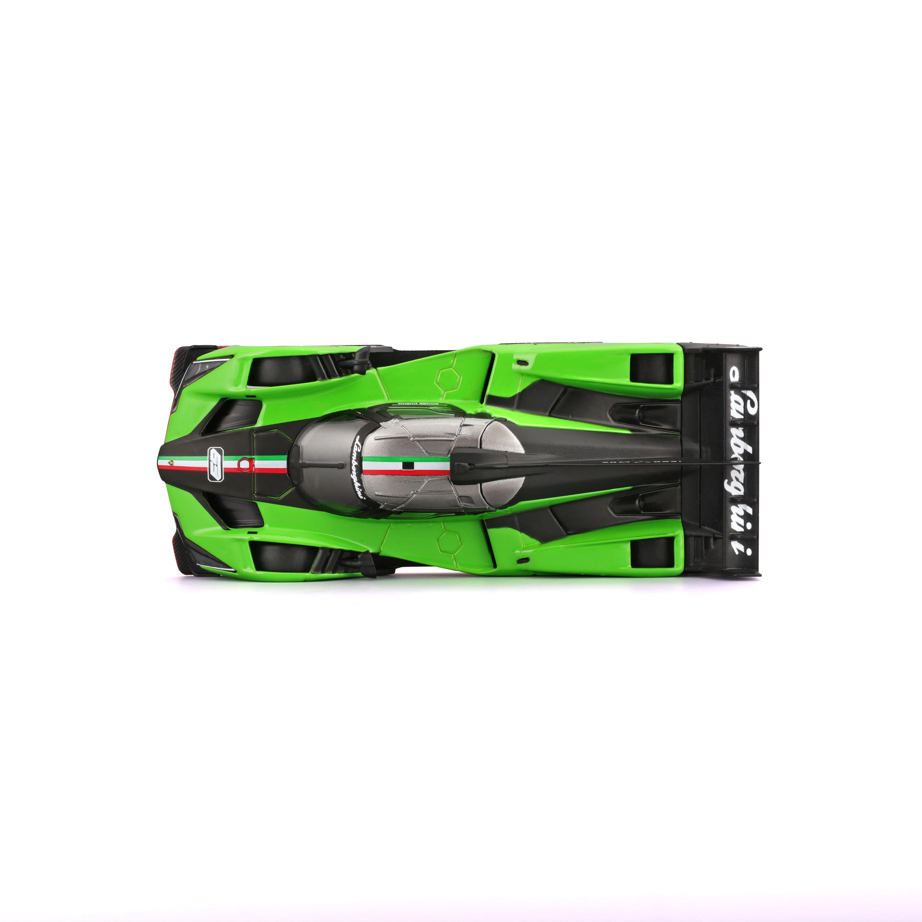 Ala prominente, diffusore e linee affilate della carrozzeria sottolineano il DNA della LAMBORGHINI SC63 e offrono un aspetto realistico in scala 1:43.