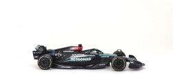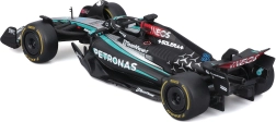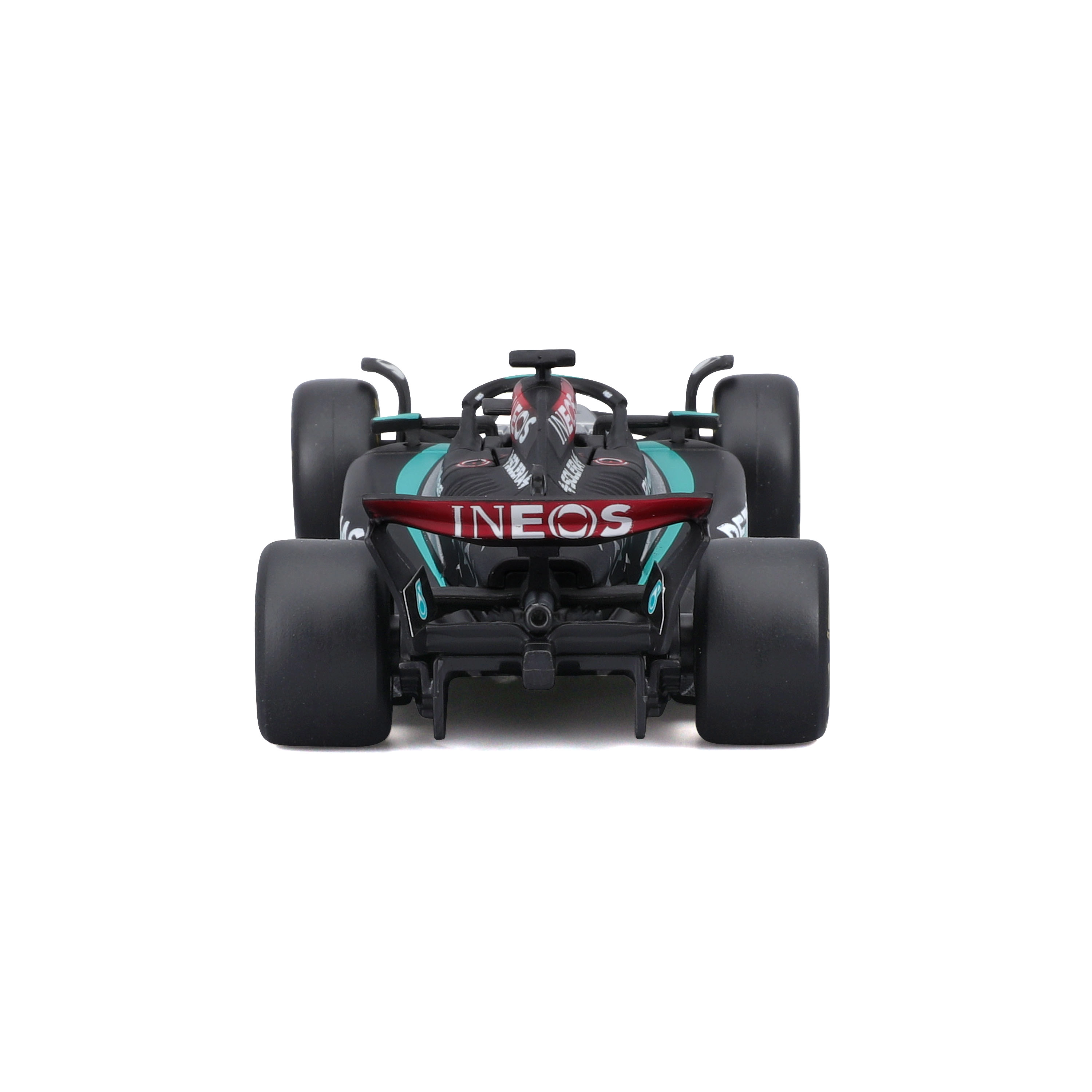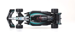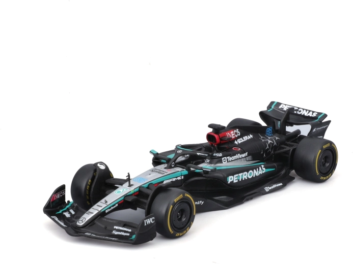 Grazie alle grafiche degli sponsor realistiche, alla livrea nera “stealth” con accenti turchesi e alle ruote liberamente rotanti, il modello è un’ottima aggiunta alla vetrina e un regalo per gli appassionati di F1 e di George Russell. La compatta scala 1:43 facilita l’esposizione e la raccolta dell’intera gamma del team.
