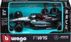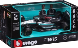 Questo modello in metallo di Bburago riproduce in modo autentico la vettura da corsa MERCEDES‑AMG PETRONAS F1 W15 per la stagione 2024. Si distingue per proporzioni accurate, verniciatura di qualità e dettagli fini che esaltano aerodinamica, ali e abitacolo con sistema halo.