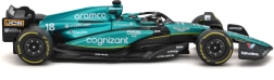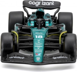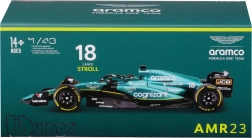 Questo modello realizzato con cura dell’Aston Martin AMR23 in scala 1:43 riproduce fedelmente le forme della monoposto della stagione 2023 con il numero 18, guidata da Lance Stroll. Si distingue per la verniciatura autentica in verde da gara, loghi degli sponsor dettagliati ed esecuzione precisa di ali, diffusore e roll‑bar di protezione halo.