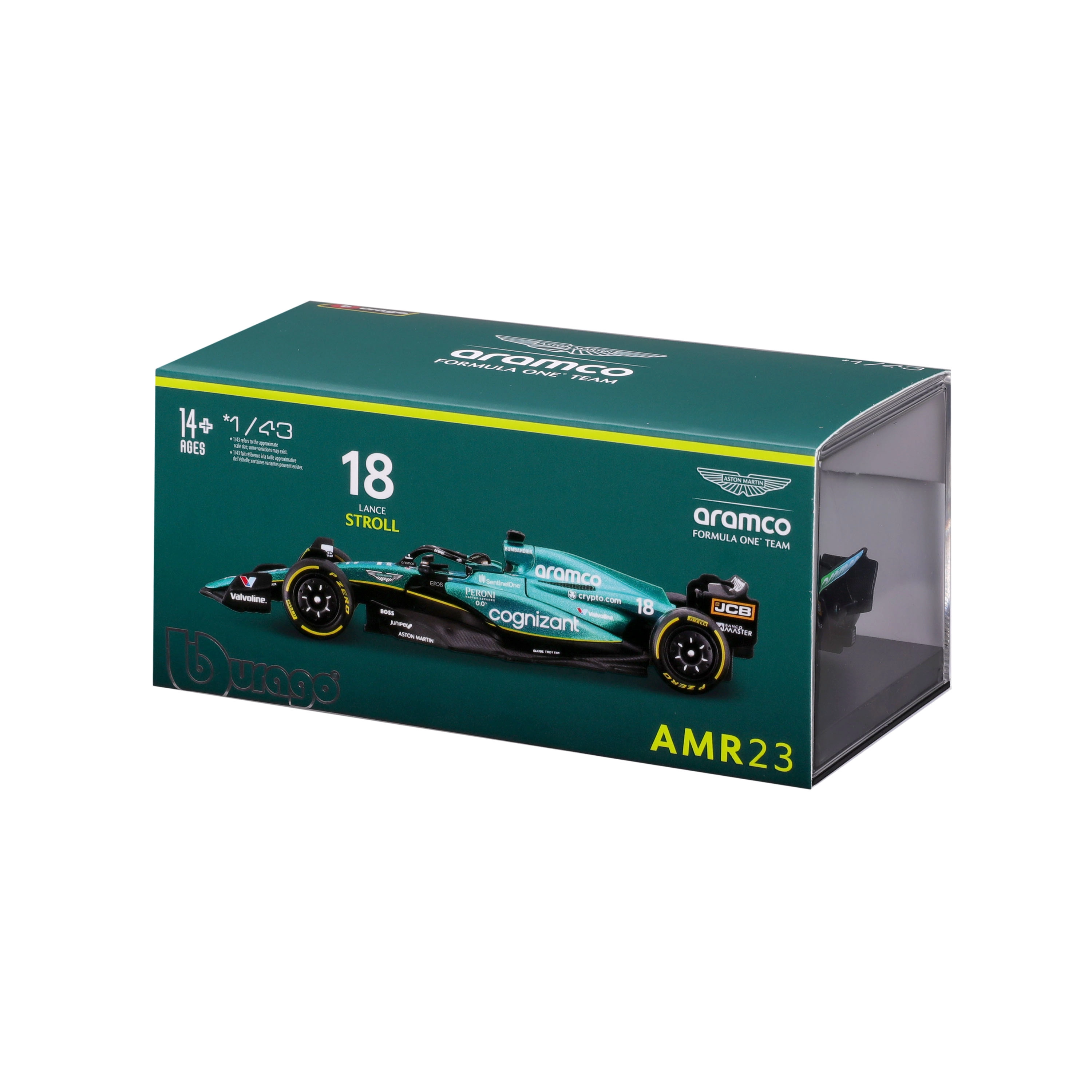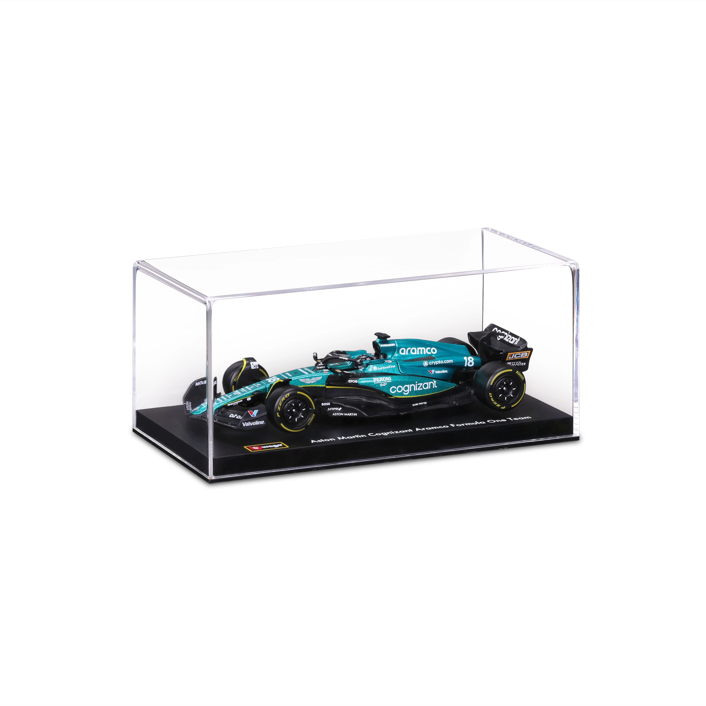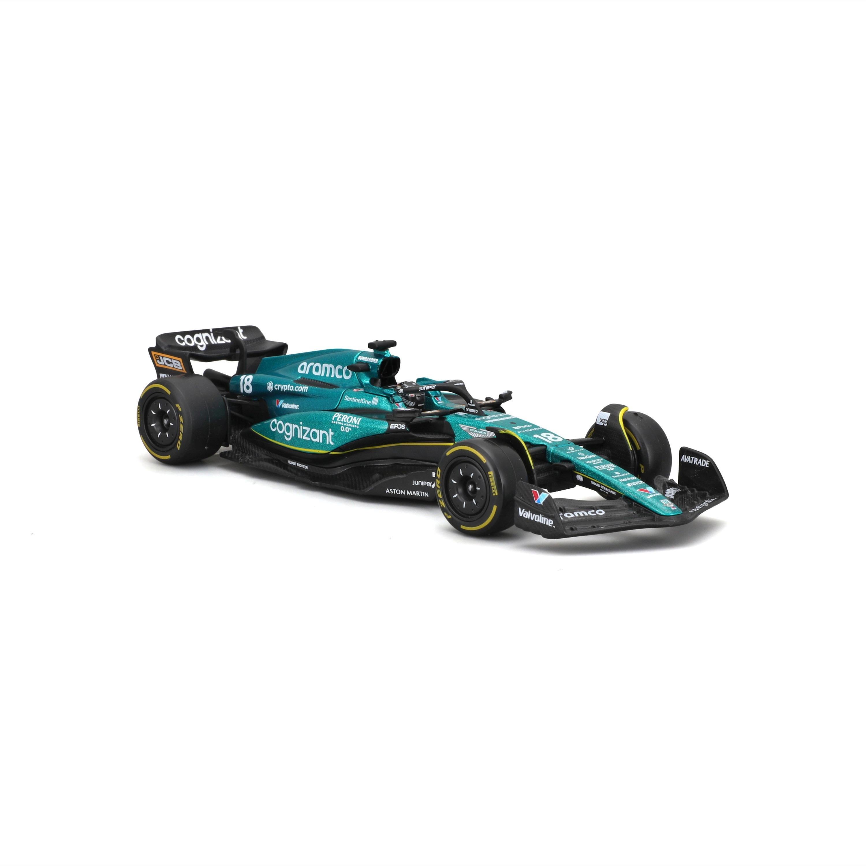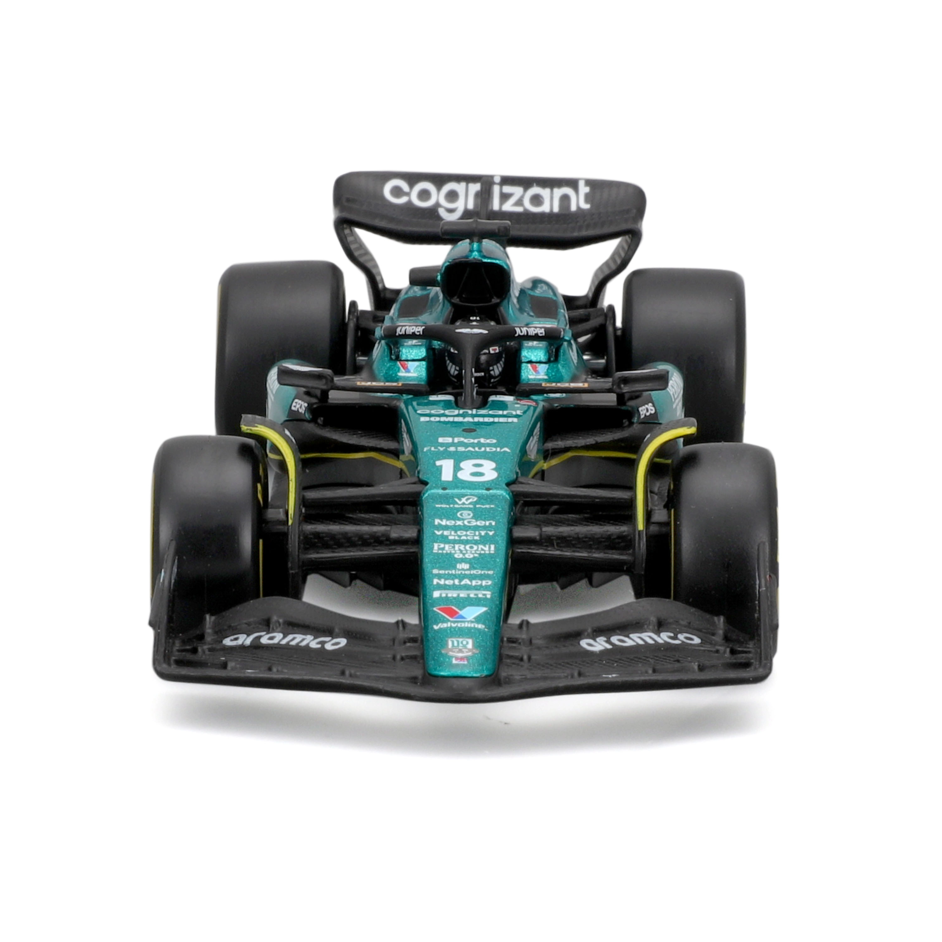 Colori Aston Martin fedeli all’originale, loghi degli sponsor e ali, halo e diffusore modellati con precisione per un look altamente autentico.