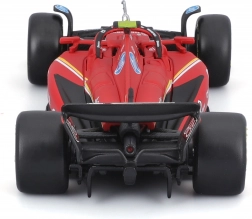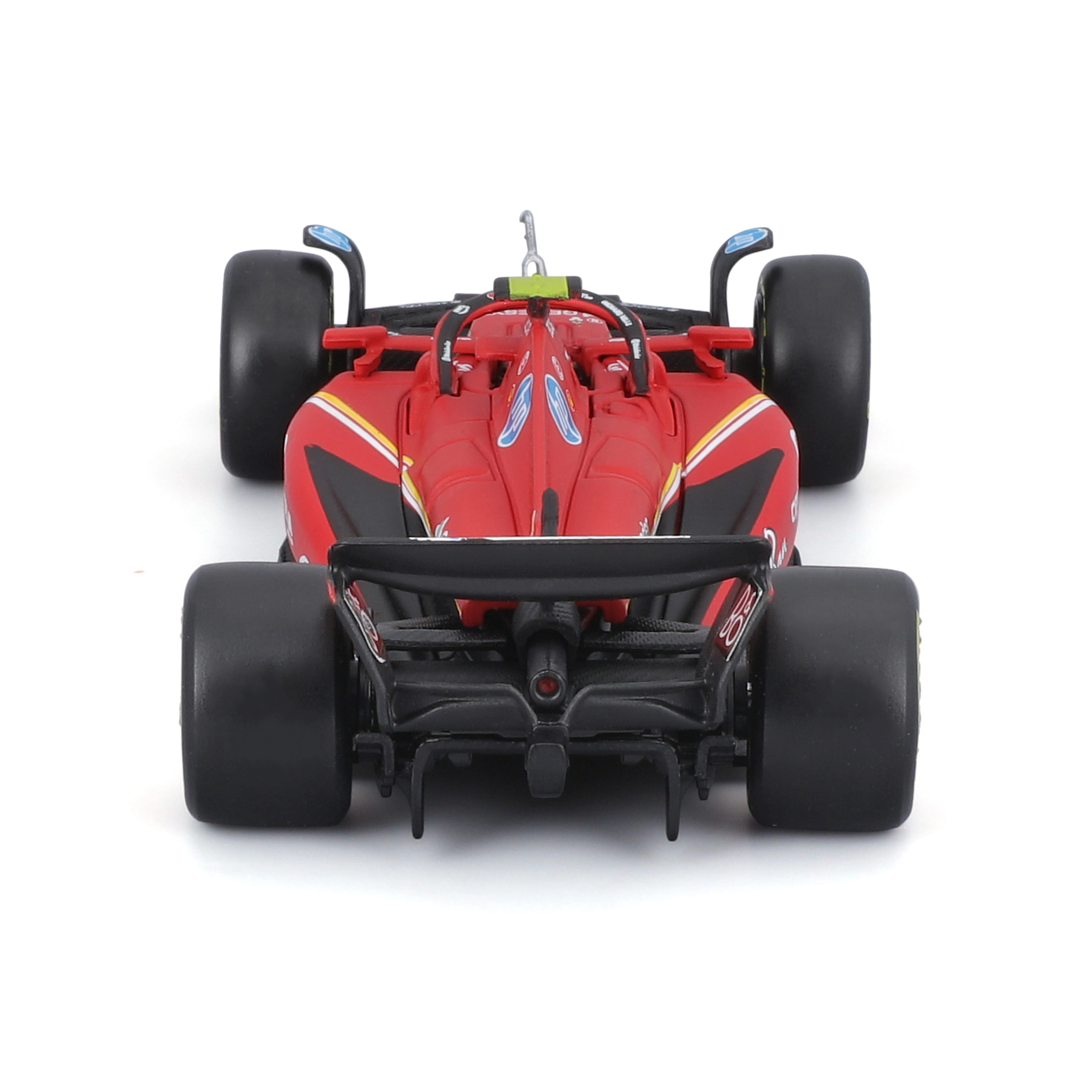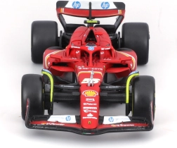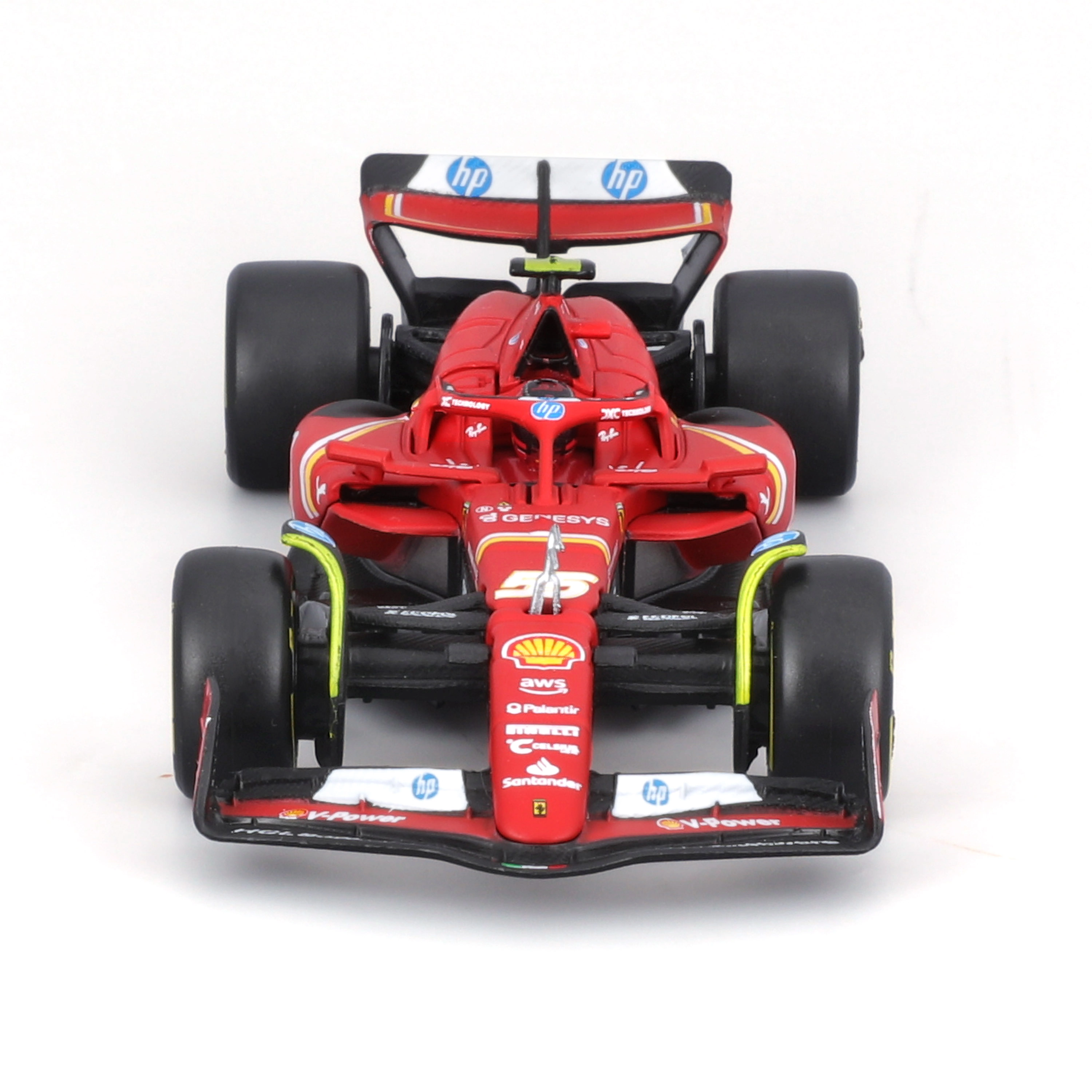 Proporzioni fedeli della Ferrari SF-24 con loghi degli sponsor, ali aerodinamiche e dettagli dell’abitacolo con il pilota Carlos Sainz.