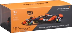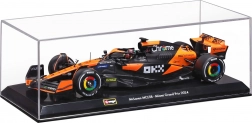 La solida teca in acrilico con la dicitura “McLaren MCL38 – Miami Grand Prix 2024” garantisce esposizione sicura e protezione dalla polvere. Grazie alle ruote girevoli e alla verniciatura precisa, il modello appare estremamente realistico ed è ideale per gli appassionati di motorsport o come confezione regalo.