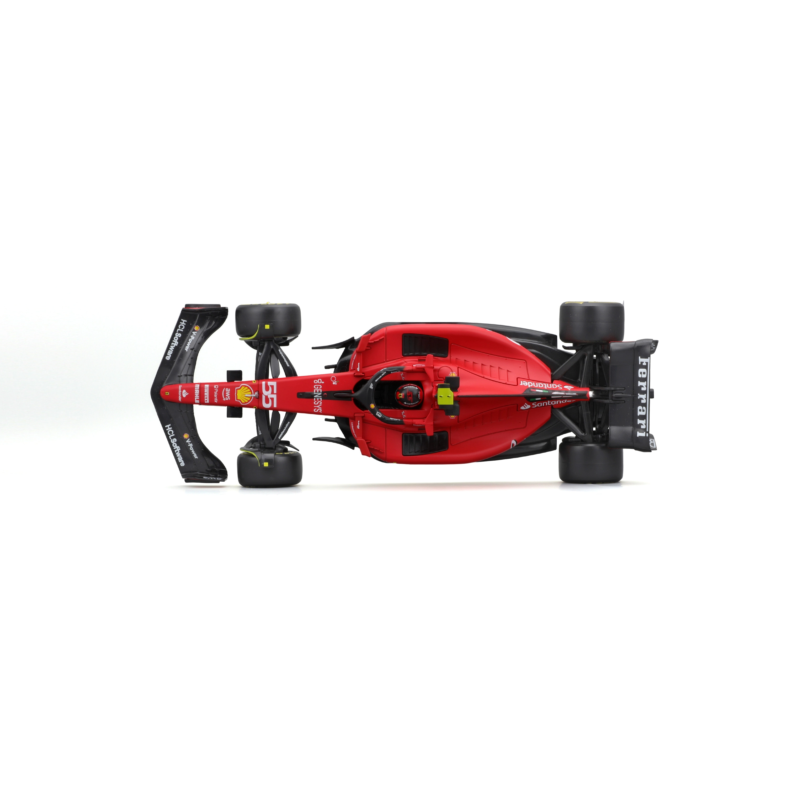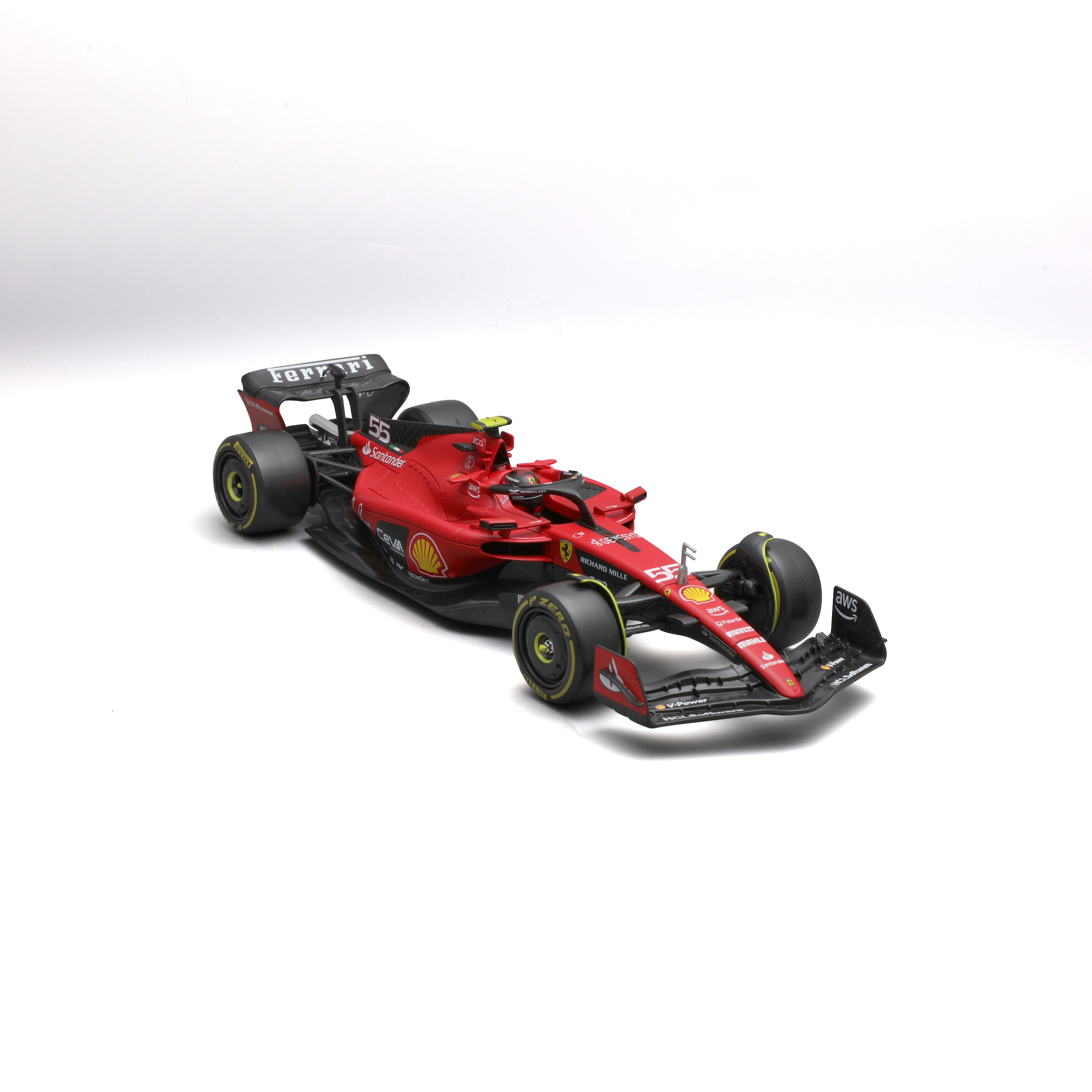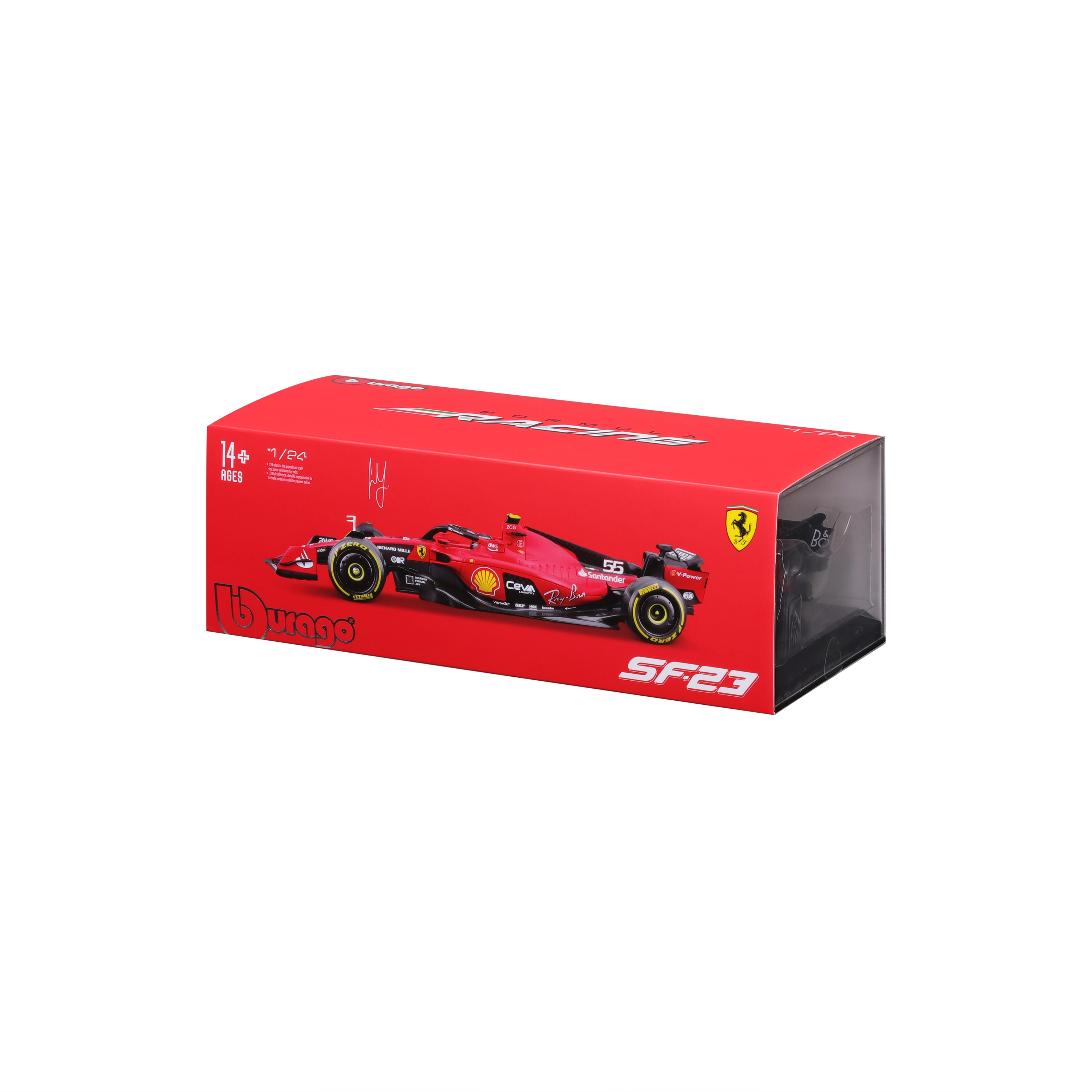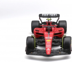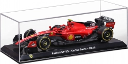 Il modello è realizzato con attenzione a proporzioni realistiche e dettagli fini, inclusi pneumatici slick, livrea da gara e numero 55 del pilota Carlos Sainz. È incluso un box protettivo rigido (hard case), che protegge dalla polvere e facilita l’esposizione su mensole o in vetrina.
