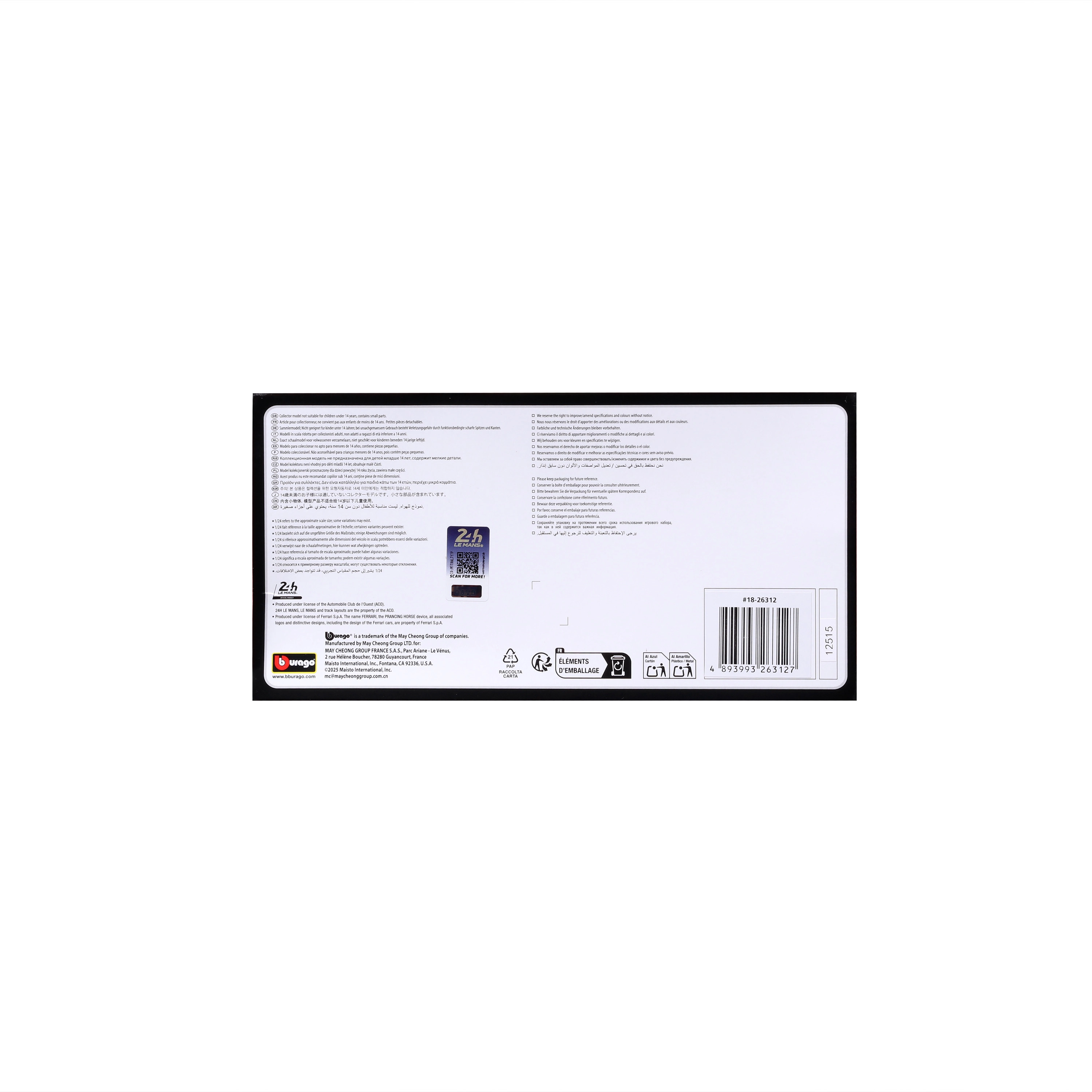 Il veicolo monta pneumatici a profilo ribassato, presenta fari, specchietti e cockpit dettagliati e scorre agevolmente sulle ruote. Il modello è fornito in una confezione regalo finestrata, ideale per l’esposizione senza necessità di apertura.