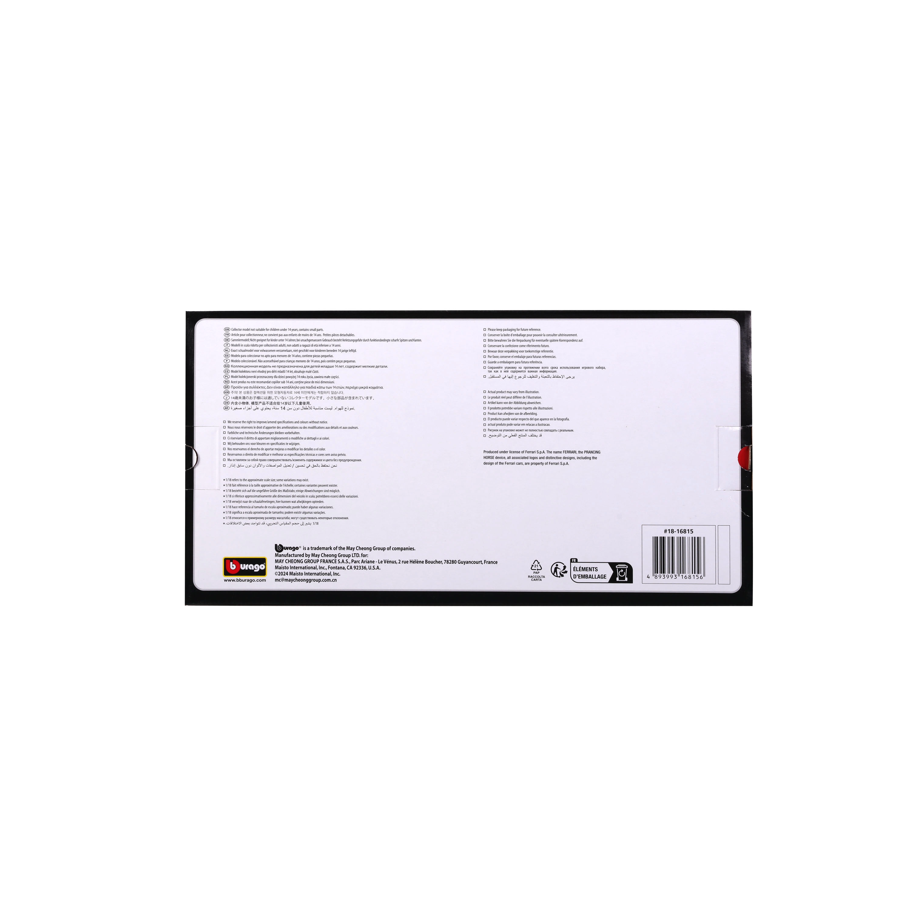 Grazie alla scala 1:18 risaltano i dettagli della carrozzeria e dell’abitacolo, con figurina del pilota. Le ruote girano in modo fluido, rendendo il modello adatto all’esposizione e a piccoli spostamenti. Inclusa una confezione decorativa che protegge il modello e funge da elegante vetrina.