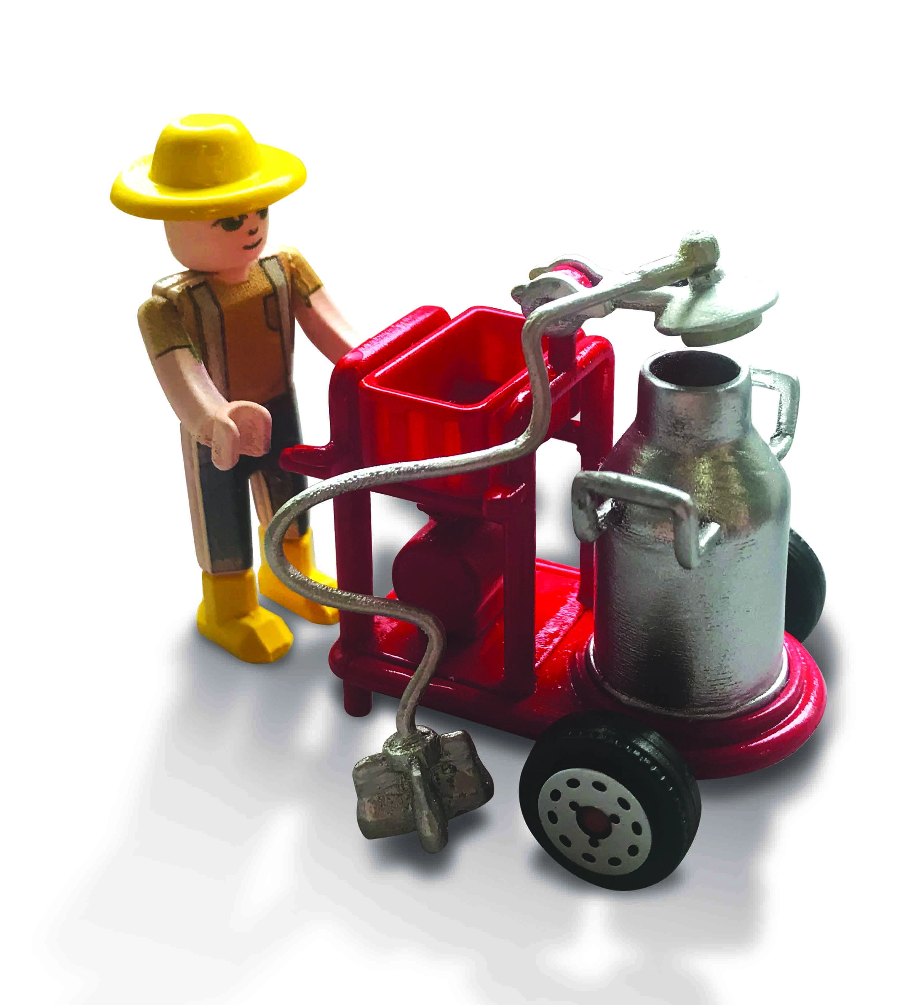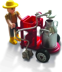 Il contadino con mungitrice mobile e tubi porta in gioco una routine di fattoria autentica. Il carrello è facile da manovrare e amplia le possibilità di gioco.