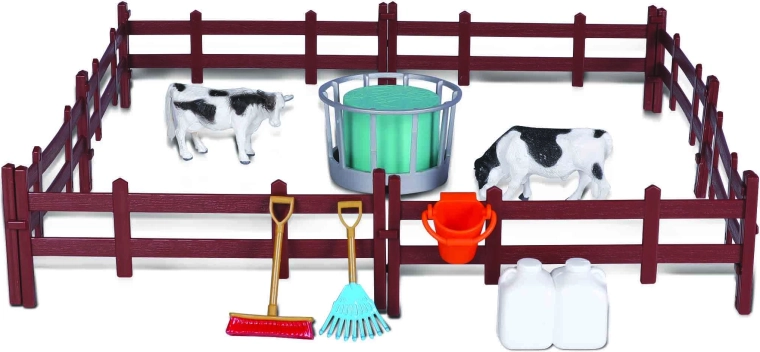 È incluso anche un carrello mobile con mungitrice e la figurina del contadino, che aggiunge un ulteriore tocco di realismo alla routine quotidiana della fattoria. I bambini sviluppano motricità fine, fantasia e senso di responsabilità nella cura degli animali da allevamento. La plastica di qualità e i componenti resistenti garantiscono lunga durata e gioco in sicurezza.