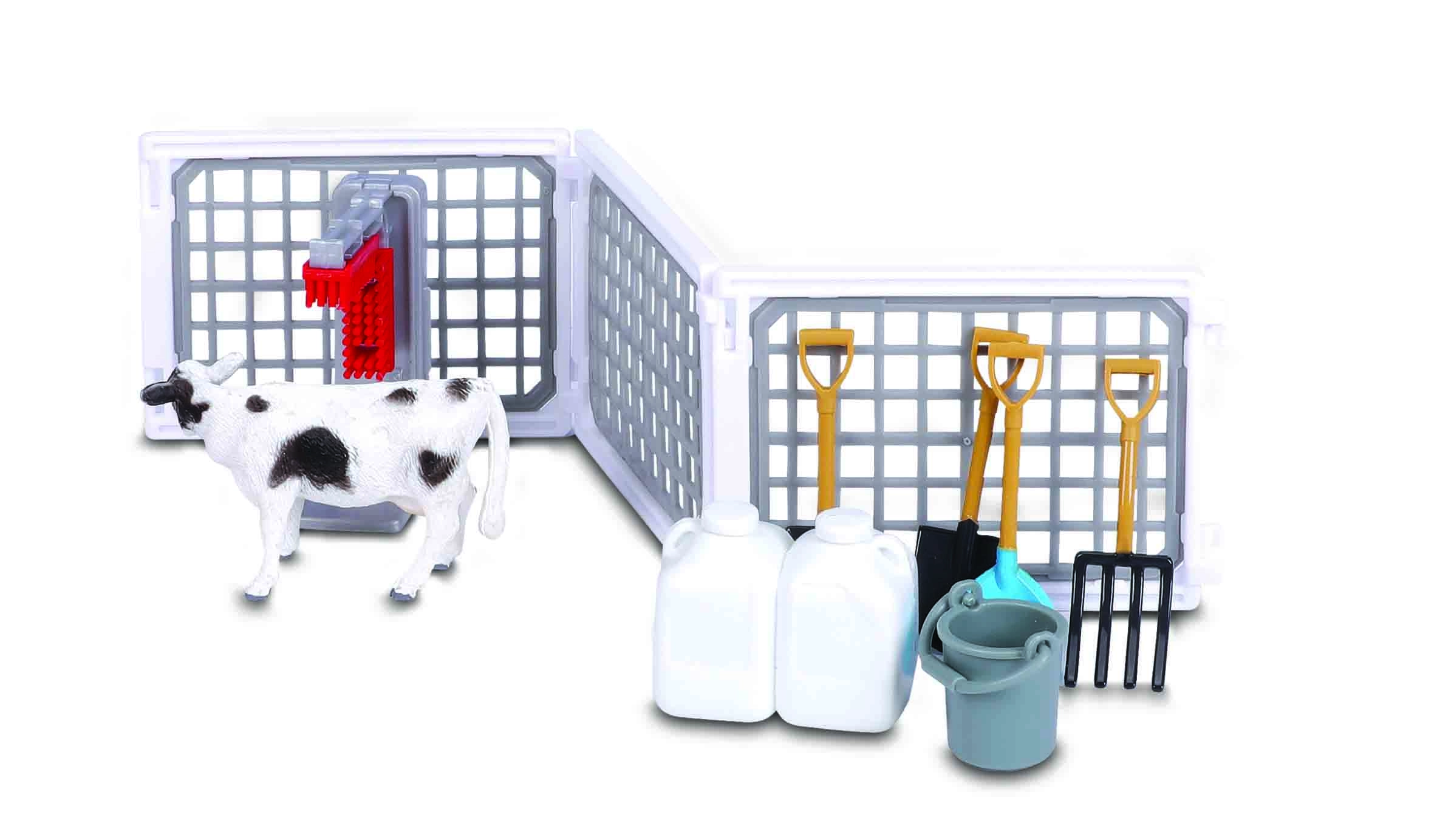 Questa fattoria delle mucche, ricca di dettagli della linea Bburago Farmland, offre ai bambini tutto il necessario per un variegato gioco di fattoria. Il set include mucche, recinti, mangiatoia, utensili e accessori per nutrire, pulire e prendersi cura degli animali. Grazie al sistema modulare, il recinto si può riorganizzare facilmente per creare nuovi scenari di gioco.