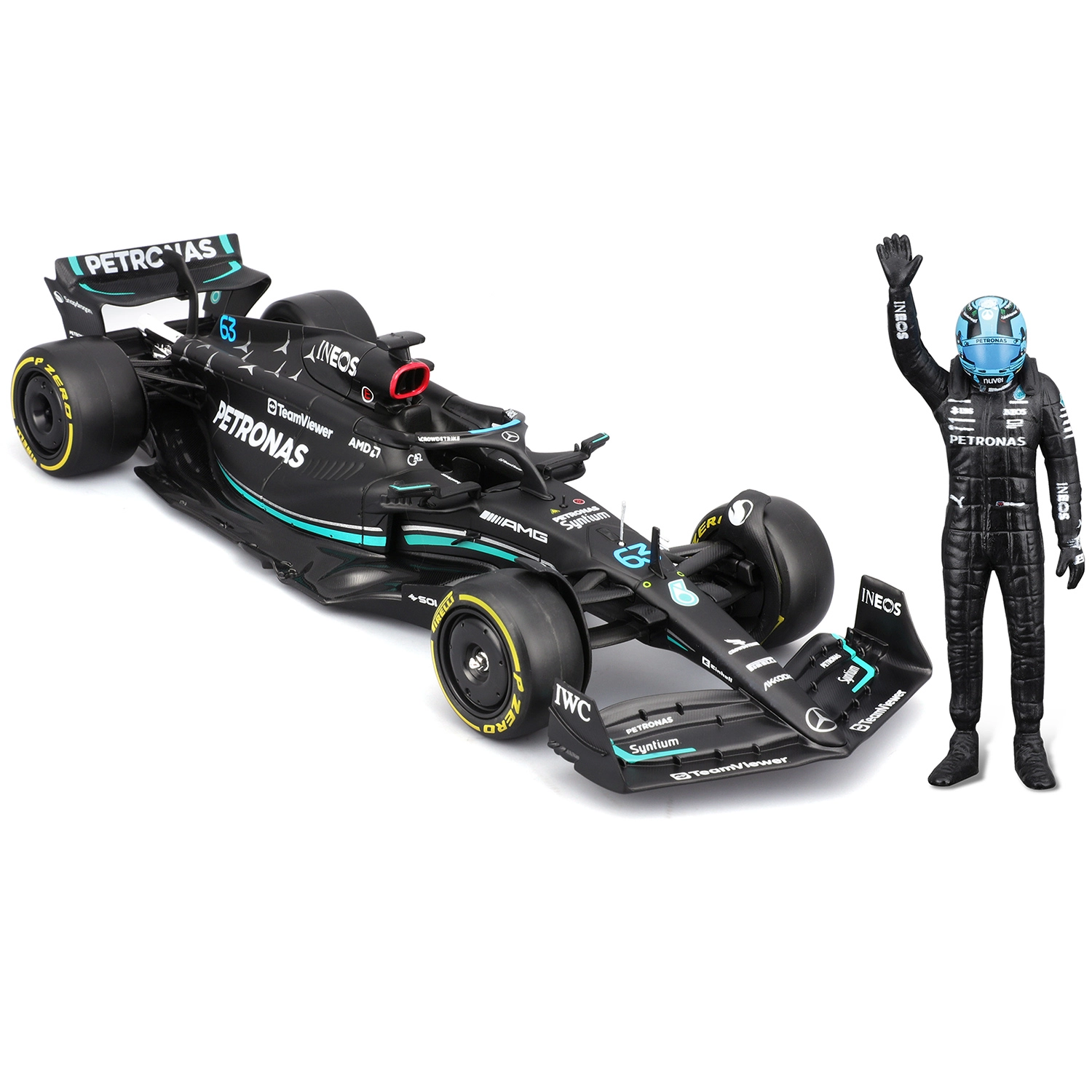 In dotazione una figurina decorativa del pilota George Russell e una livrea con stampe sponsor di alta qualità che sottolinea la fedeltà all’originale. Il modello è ideale per display, vetrina e come regalo per gli appassionati di F1.
