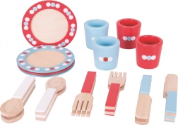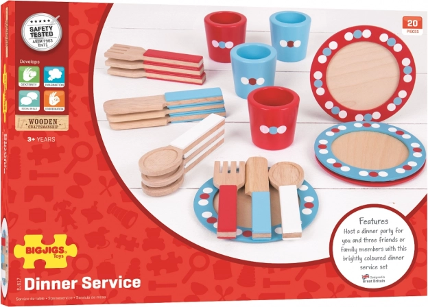Questo colorato set da pranzo in legno 0e progettato per i giovani cuochi principianti che vogliono preparare le proprie cene e organizzare t0e aperitivi. Un ottimo complemento per ogni cucina in legno da gioco, il set include: