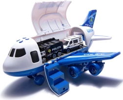 Scopri il grande aereo-trasportatore della polizia WOOPIE, che porterà la fantasia dei bambini in una missione d’azione! Nella fusoliera spaziosa entrano 3 macchinine della polizia e un set di segnali; non mancano effetti luminosi e sonori con sirene, fusoliera apribile e rampa ribaltabile né la pratica maniglia per un facile trasporto.