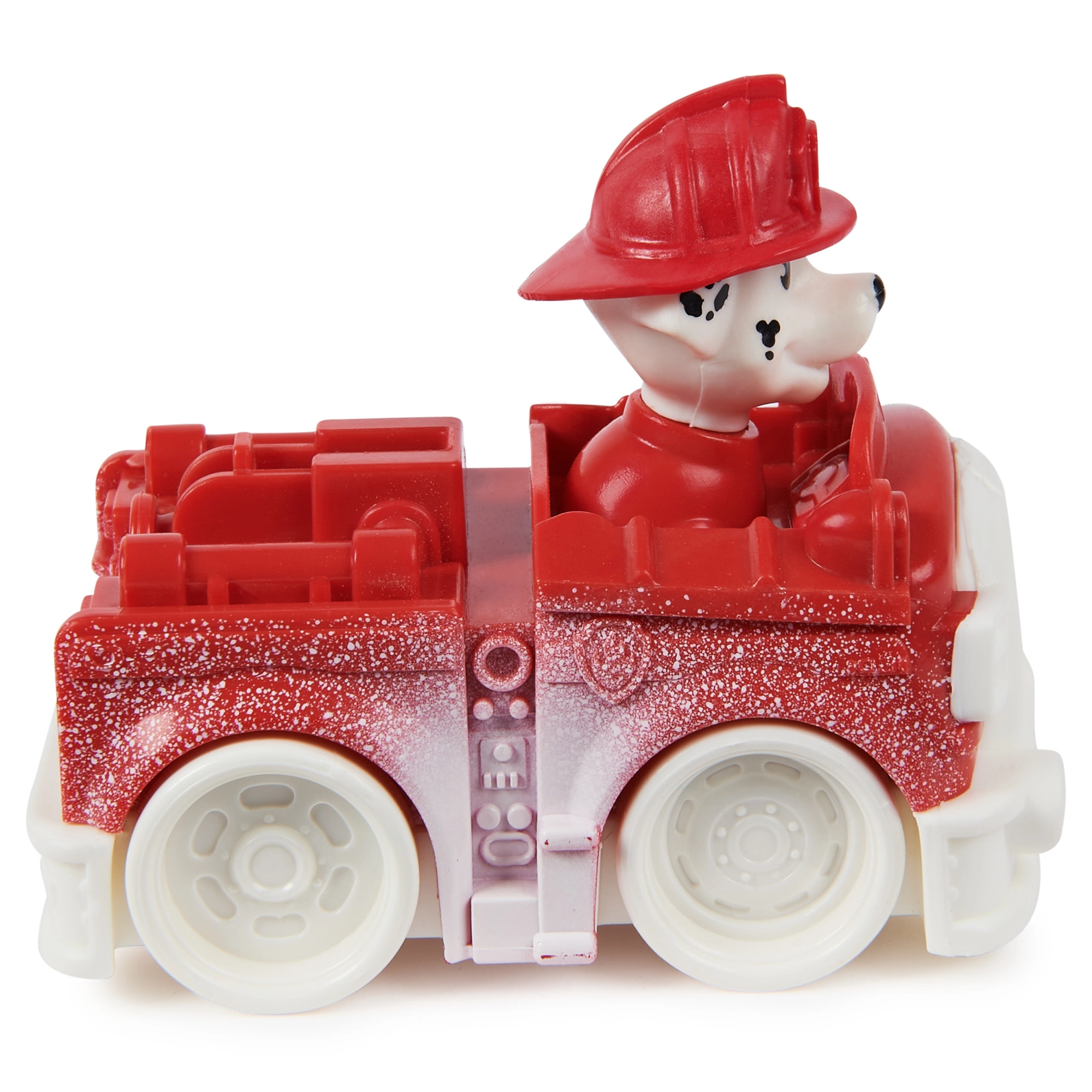 Gli elementi bianchi “innevati” sul camion rosso donano al gioco un’atmosfera invernale ed esaltano il ruolo di Marshall come pompiere.