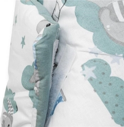 L’imbottitura più spessa, circa 3 cm, e il morbido cotone offrono al bebè calore, sostegno e una sensazione di sicurezza anche nei giorni più freschi.