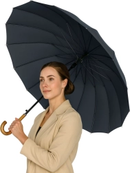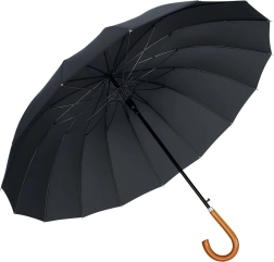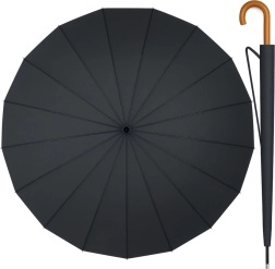 Grande ombrello automatico con manico in legno, 24 stecche, 115 cm, nero