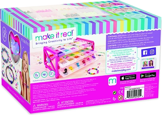 Hai tutto a portata di mano: 2600 perline per combinazioni infinite, 8 cordoncini cerati colorati della lunghezza di 8 m ciascuno e un filo elastico lungo 4 m. Il set è ideale per creare a casa, per i laboratori e come regalo per piccoli gioiellieri.