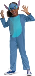 La tuta blu con pannello addominale chiaro e la caratteristica maschera riproducono fedelmente il personaggio amato di Lilo & Stitch.
