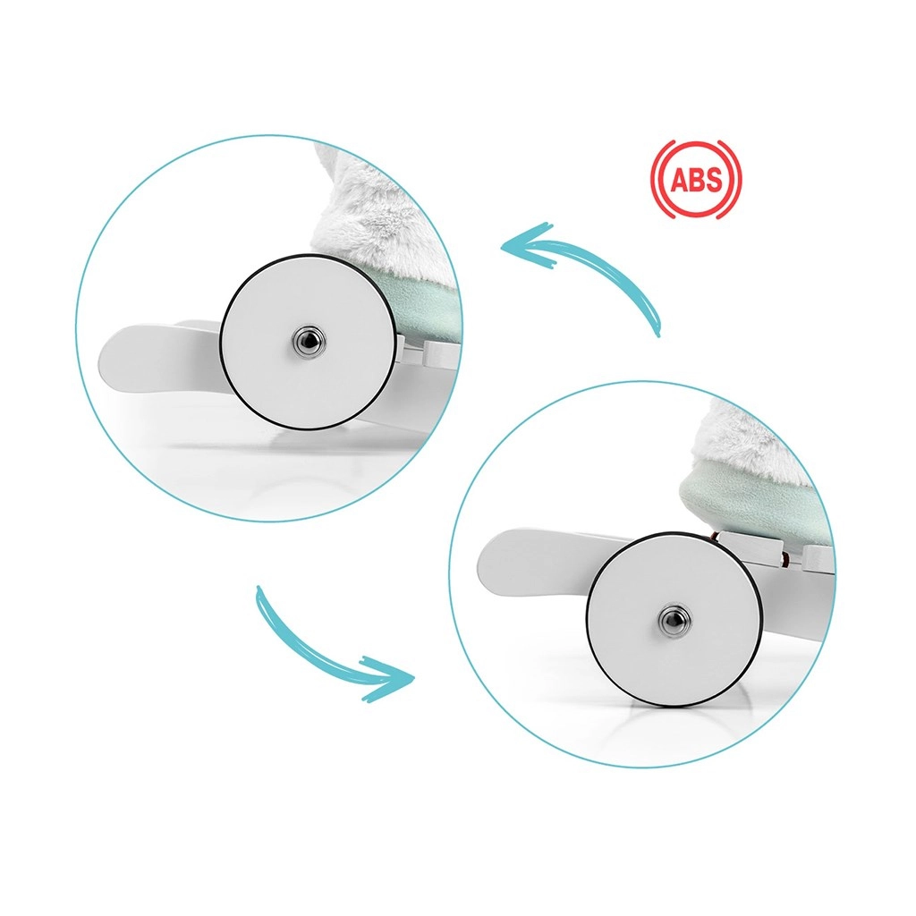 POLLY unisce due mondi amati in uno: il sicuro dondolio e il divertente movimento in casa. Grazie al comodo sedile a poltroncina, allo schienale e alle cinture regolabili, il bambino è al sicuro, mentre le slitte in legno con pedane e le maniglie laterali aiutano a mantenere l’equilibrio. Il peluche morbidissimo è piacevole al tatto e invita alle coccole.