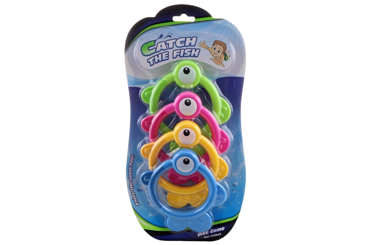 Rendi il nuoto estivo più divertente con l’allegra serie di pesci da immersione. Quattro giocattoli in plastica colorata sono ideali per allenare l’immersione e divertirsi in acqua. Leggeri, colorati e facili da afferrare, perfetti per piscina e mare. Adatti ai bambini dai 6 anni.