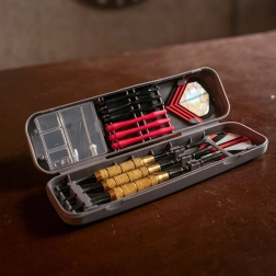 Scomparti organizzati mantengono freccette, shaft di ricambio, alette e punte al sicuro e in ordine. Ideale per il trasporto e la protezione dell’attrezzatura.