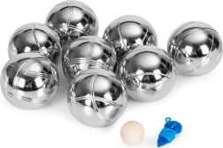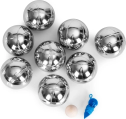 Le bocce in acciaio cromato combinano resistenza ed eleganza. Tre diversi motivi di rigatura consentono un riconoscimento rapido durante il gioco. Il cordino di misurazione incluso aiuta a determinare con precisione chi è più vicino: gioco leale senza discussioni.