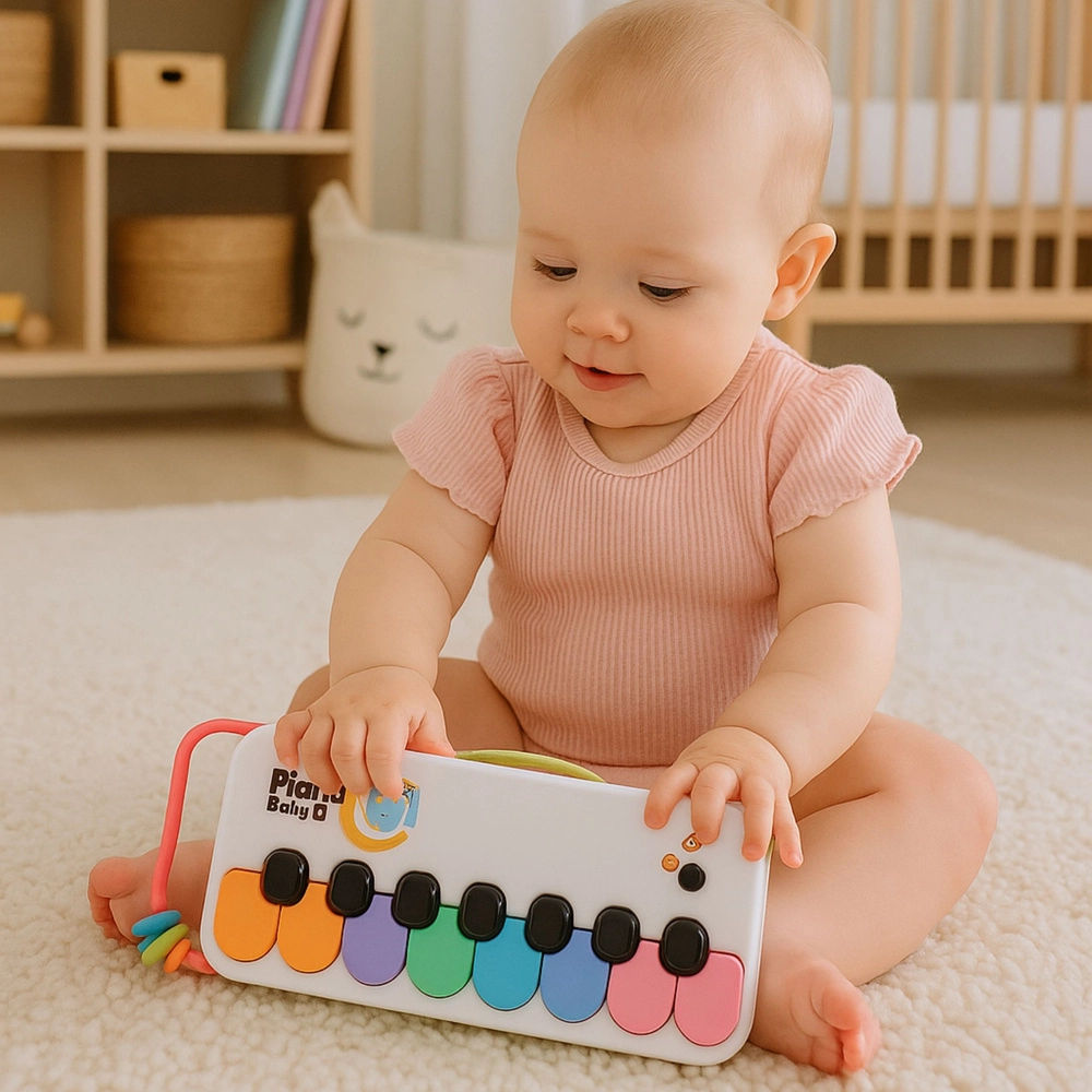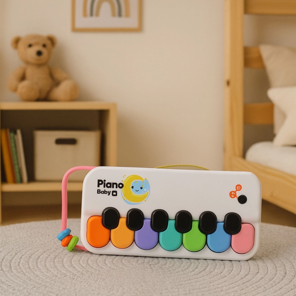 Il colorato pianino interattivo per i più piccoli sviluppa udito, senso del ritmo e immaginazione. Grazie a 8 tasti variopinti, piacevoli effetti sonori e a un design leggero e portatile con pratico laccetto, è ideale a casa, all’asilo e in viaggio. Realizzato con materiali sicuri, perfetto per le manine dei bambini.