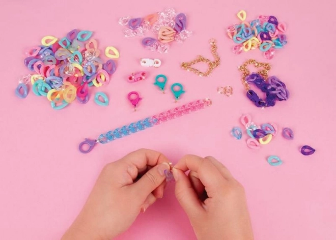 Crea braccialetti unici esattamente secondo il tuo stile. Questo set creativo offre un'ampia gamma di colori e possibilità di combinazione, così ogni pezzo sarà originale. Grazie al semplice sistema di collegamento, la realizzazione è veloce, divertente e perfetta per principianti.
