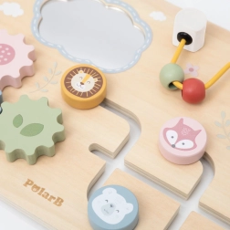 La tavola sensoriale in legno VIGA della collezione PolarB è un ottimo gioco educativo per i piccoli esploratori. Offre uno specchietto, un labirinto con perline, ingranaggi e un cursore scorrevole che attirano l’attenzione e favoriscono lo sviluppo dei sensi e la coordinazione dei movimenti. Grazie ai colori pastello e al piacevole legno, la tavola stimola la curiosità e l’apprendimento attraverso il gioco.