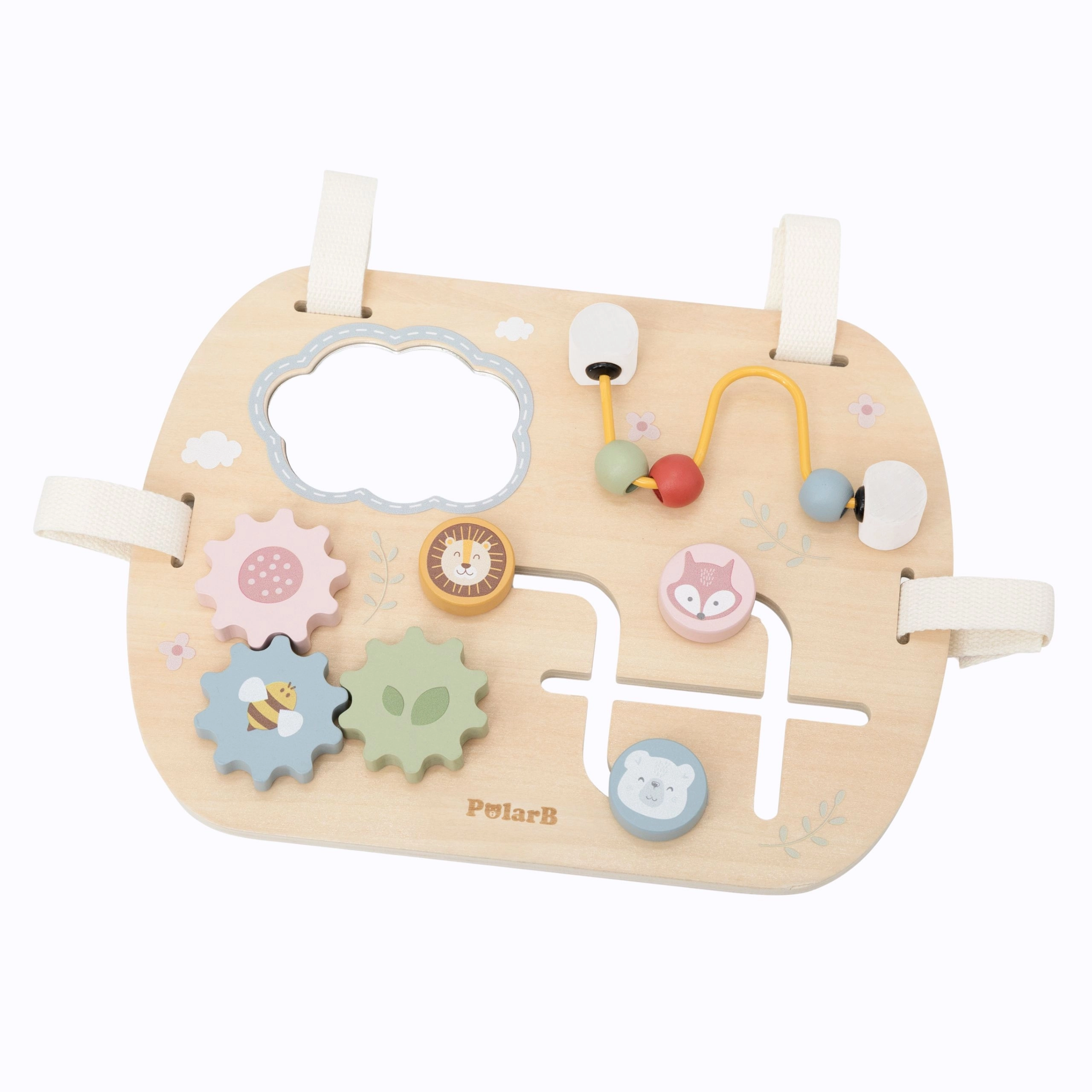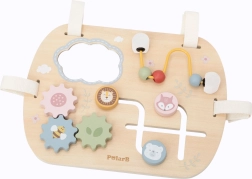 La tavola sensoriale VIGA PolarB combina legno sicuro, design studiato e delicati colori pastello per coinvolgere i bambini e svilupparne le competenze. Gli elementi sono facili da maneggiare e favoriscono la motricità fine, la coordinazione visuo-motoria e il ragionamento logico. Grazie a quattro cinghie in cotone con velcro può essere fissata al lettino o al passeggino, oppure utilizzata liberamente su una superficie piana.
