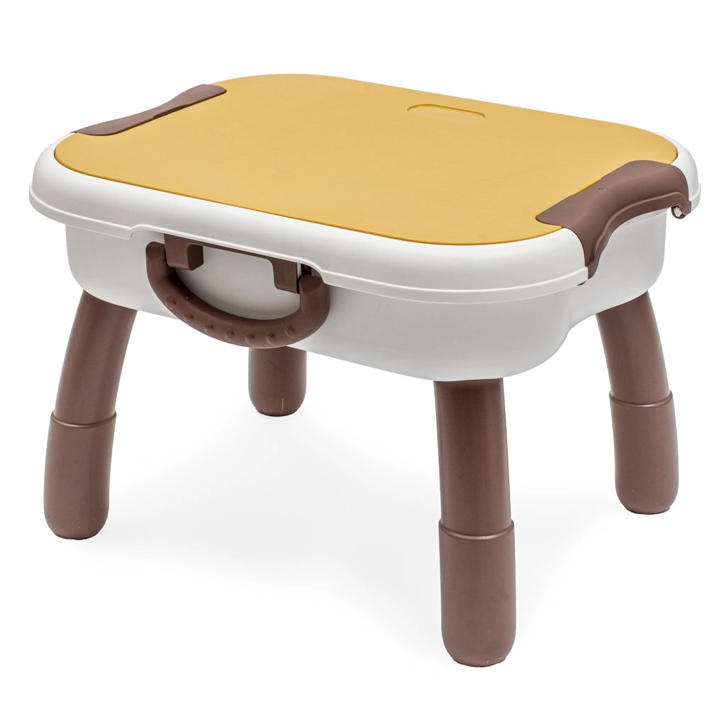 In pochi istanti il tavolo si trasforma in una valigetta portatile con chiusure e maniglia, così i bambini possono portare il set ovunque: in visita, in campagna o in auto. I vassoi laterali tengono i pezzi a portata di mano e aiutano a mantenere l’ordine durante il gioco.