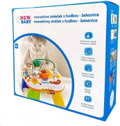 Divertente tavolino interattivo NEW BABY per bambini dai 10 mesi, offre luci, suoni e frasi parlate in ceco e slovacco, 12 melodie e 4 canzoncine, un trenino mobile con orsetto e tante attività per lo sviluppo della motricità fine e della percezione. Utilizzabile con gambe o senza per giocare in viaggio.