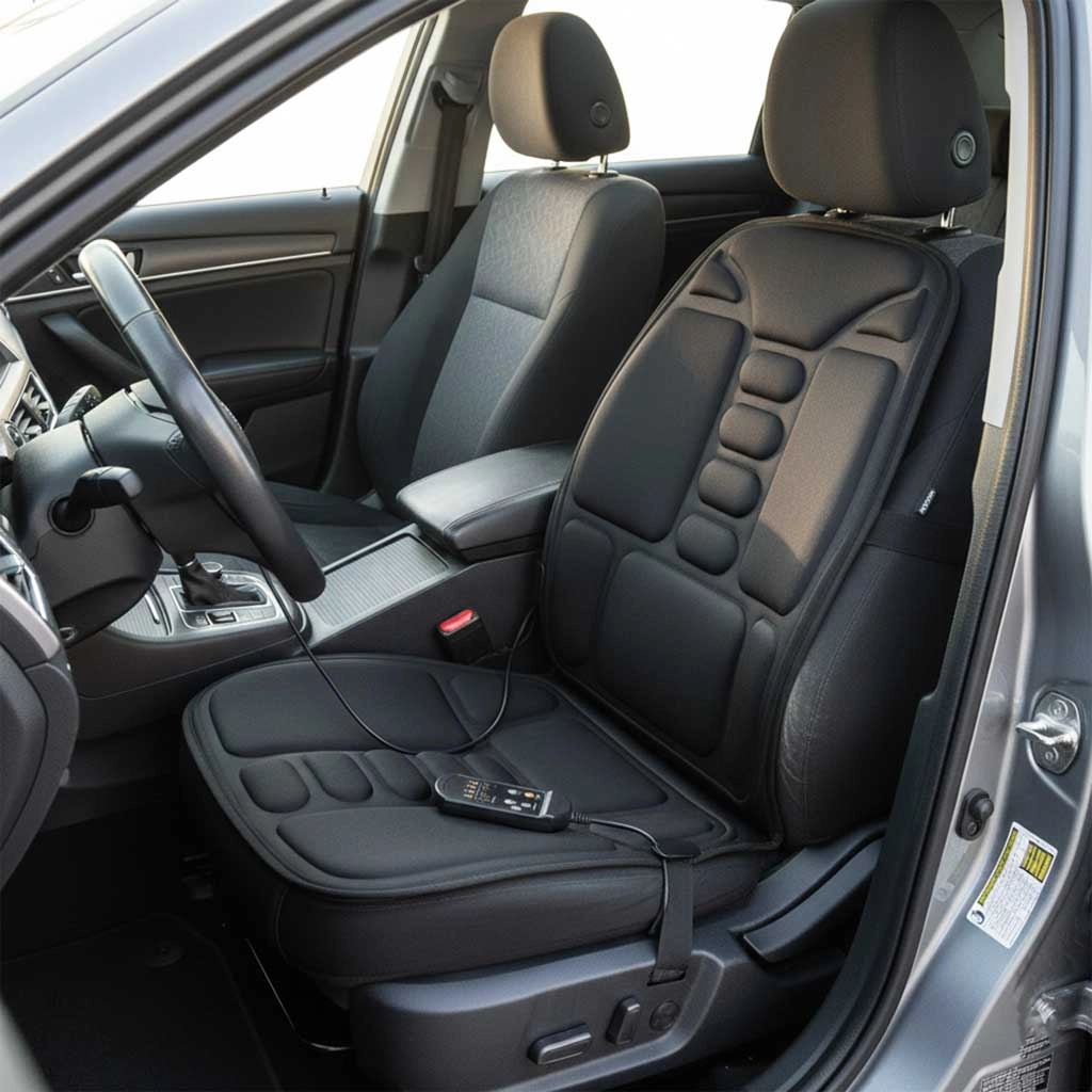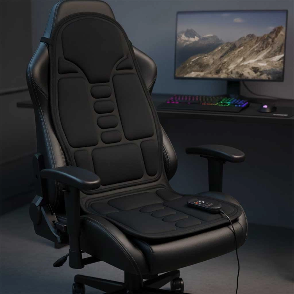 Questo confortevole coprisedile massaggiante offre un massaggio vibrante mirato per schiena e cosce e, grazie al riscaldamento integrato, favorisce il riscaldamento dei muscoli. Il semplice fissaggio con cinghie elastiche garantisce stabilità su sedia da ufficio, poltrona da gaming e sedile dell’auto.