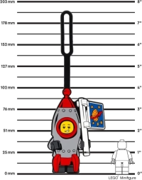 Il razzo giocoso con minifigure sorridente e bandierina cattura l'attenzione a prima vista e aiuta a riconoscere rapidamente il bagaglio.
