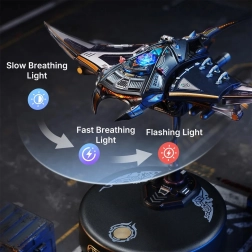 Per un effetto ancora più dinamico è disponibile la modalità Burst Mode – lampeggio rapido e accelerazione del movimento che simulano lo scatto improvviso della manta. Il modello poggia su un elegante basamento, risultando ideale come decorazione di design per salotto, studio o camera dei ragazzi.