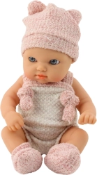 Dolce bebè alto 18 cm con dettagli realistici e arti mobili che farà felice ogni bambino. Ha un corpicino morbido e piacevole al tatto, vestitini rimovibili e sta seduto da solo, quindi è ideale per il gioco di cura e lo sviluppo della fantasia. Inclusi cuffietta con orecchiette, calzine, mutandine e bavaglino con fiocchetto.