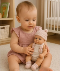 La bambola ha braccine, gambine e testolina mobili, quindi si può facilmente far sedere, sdraiare e vestire. I vestitini rimovibili incoraggiano il gioco creativo, lo sviluppo della motricità fine e i giochi di ruolo legati alla cura del bebè.