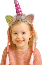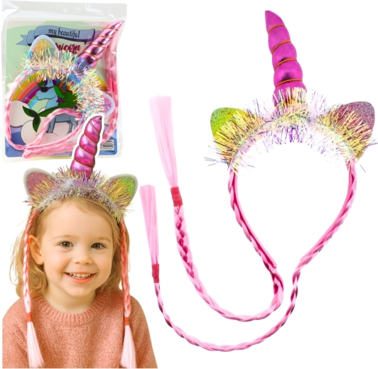 Magico cerchietto rosa in stile unicorno con corno, orecchiette e lunghe trecce, ideale per bambini e adulti. Calza perfettamente grazie alla taglia universale, è comodo da indossare e dona a ogni outfit un tocco magico – per feste, servizi fotografici, carnevale e per la quotidianità.