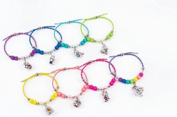 Include un cordino intrecciato nel colore del personaggio e 11 perline colorate. Facile da infilare, comodo da indossare e con misura regolabile per il polso dei bambini.