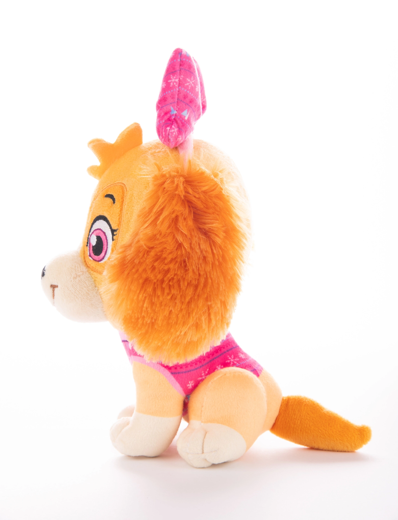 Accogli a casa Skye, l'intrepida pilota della serie amata PAW PATROL. Questo peluche di qualità, con maglioncino natalizio rosa e fiocco caratteristico, conquista con il materiale morbido, la fattura curata e l'espressione amichevole. Grazie alla dimensione compatta di 18 cm è perfetta per le manine dei bambini, per i viaggi e per il lettino.