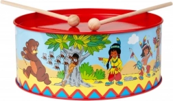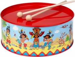 Tamburo per bambini con motivo indiano, diametro 20 cm, che entusiasmerà i piccoli musicisti. È realizzato in metallo, completato da tessuto e da due bacchette in legno. Include anche un cordino per appenderlo al collo. Favorisce lo sviluppo della coordinazione, del ritmo e dell’amore per la musica.