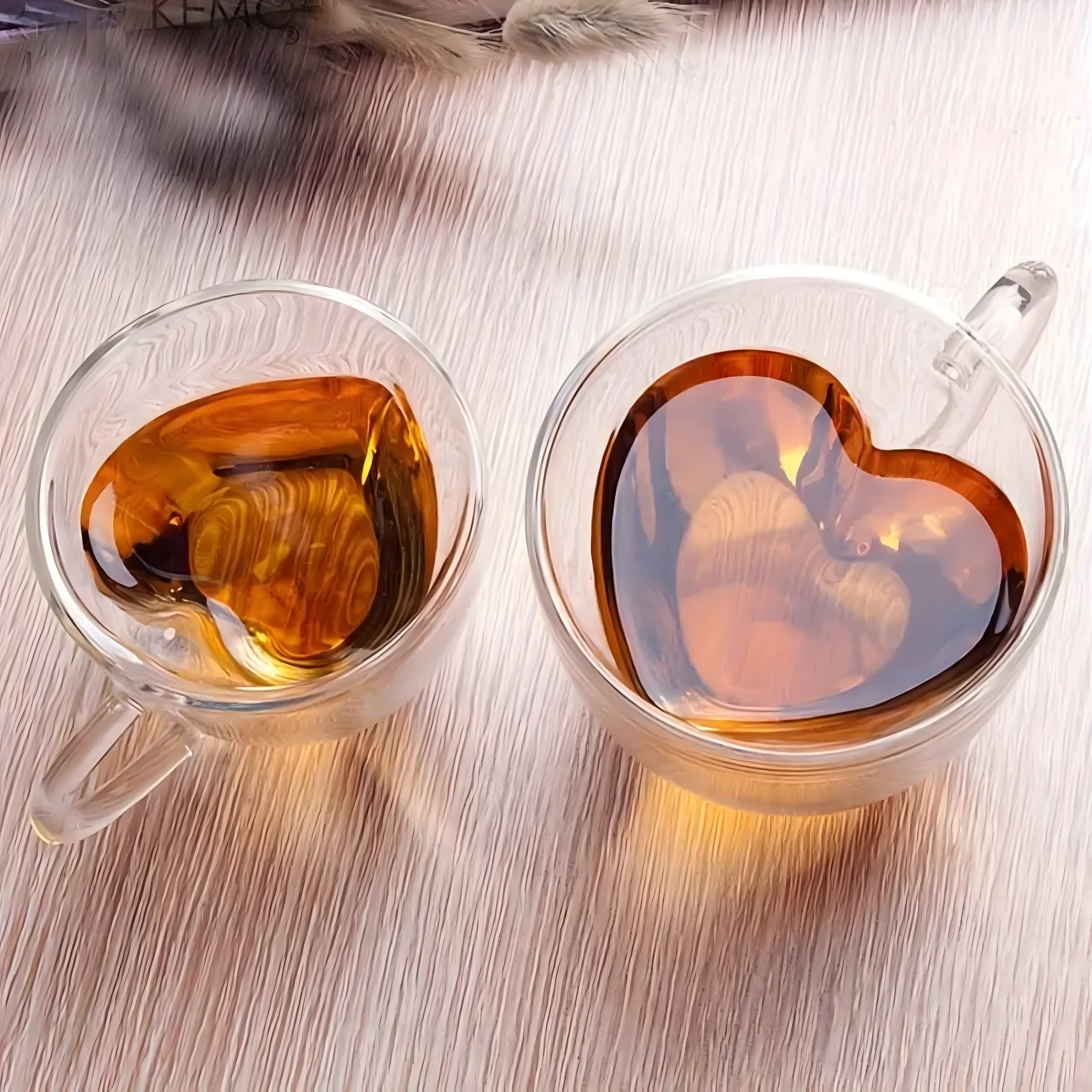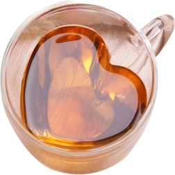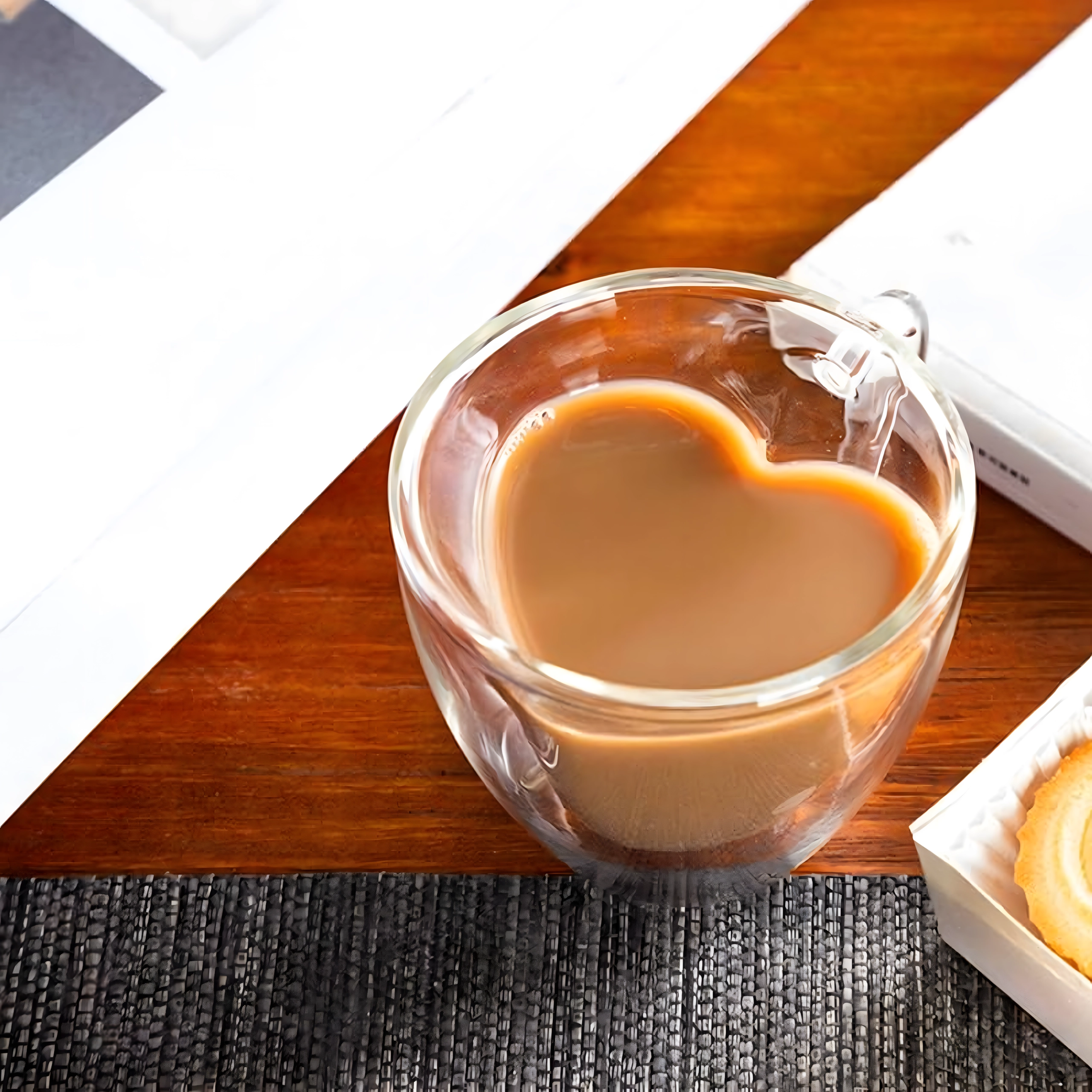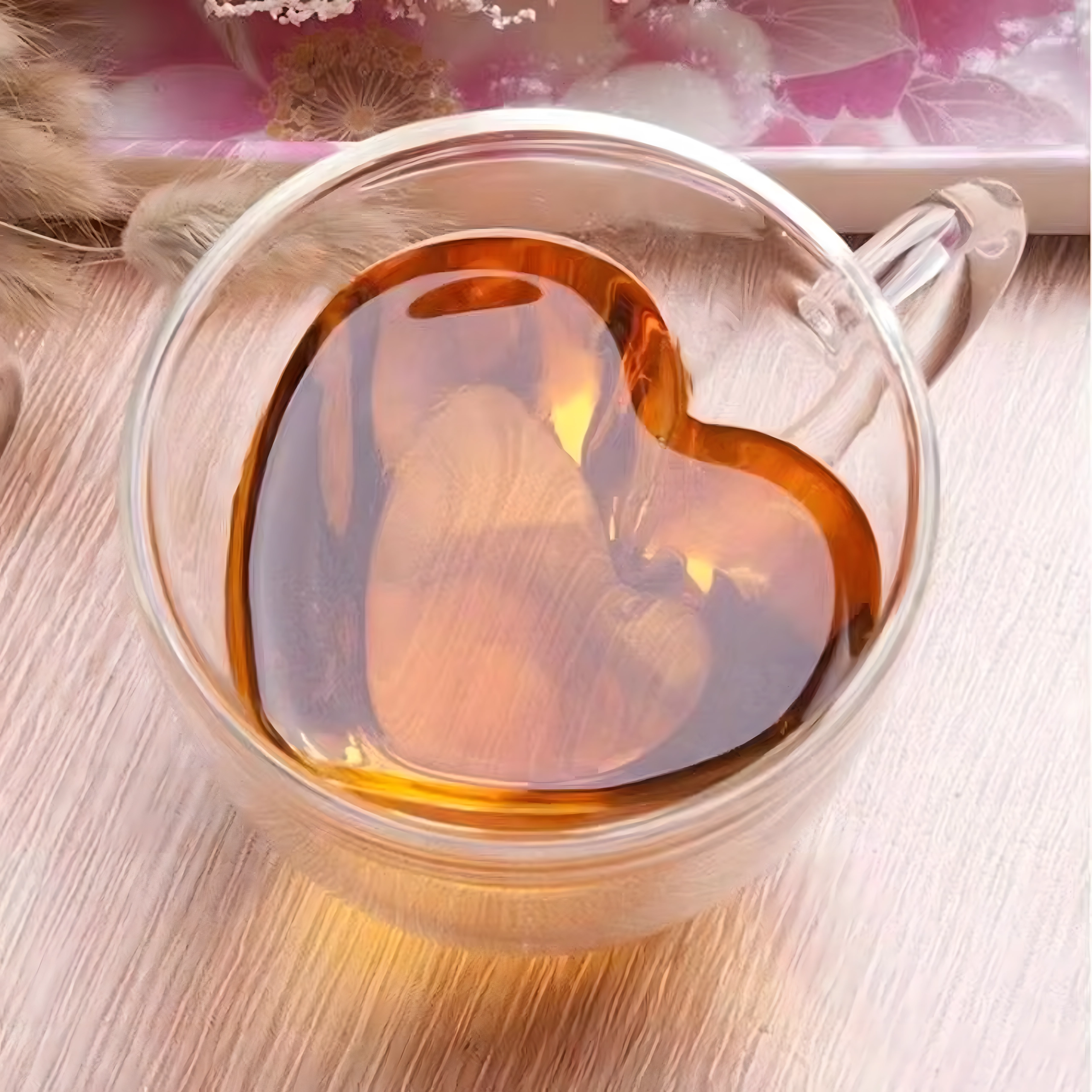 Elegante tazza in vetro a forma di cuore da 250 ml in resistente vetro borosilicato con doppia parete per una migliore isolazione termica. Perfetta per caffè caldo, tè aromatico, bevande fredde e dessert. Grazie alla struttura isolante la bevanda mantiene la temperatura più a lungo, mentre la parete esterna rimane piacevolmente fresca per una presa sicura.