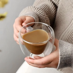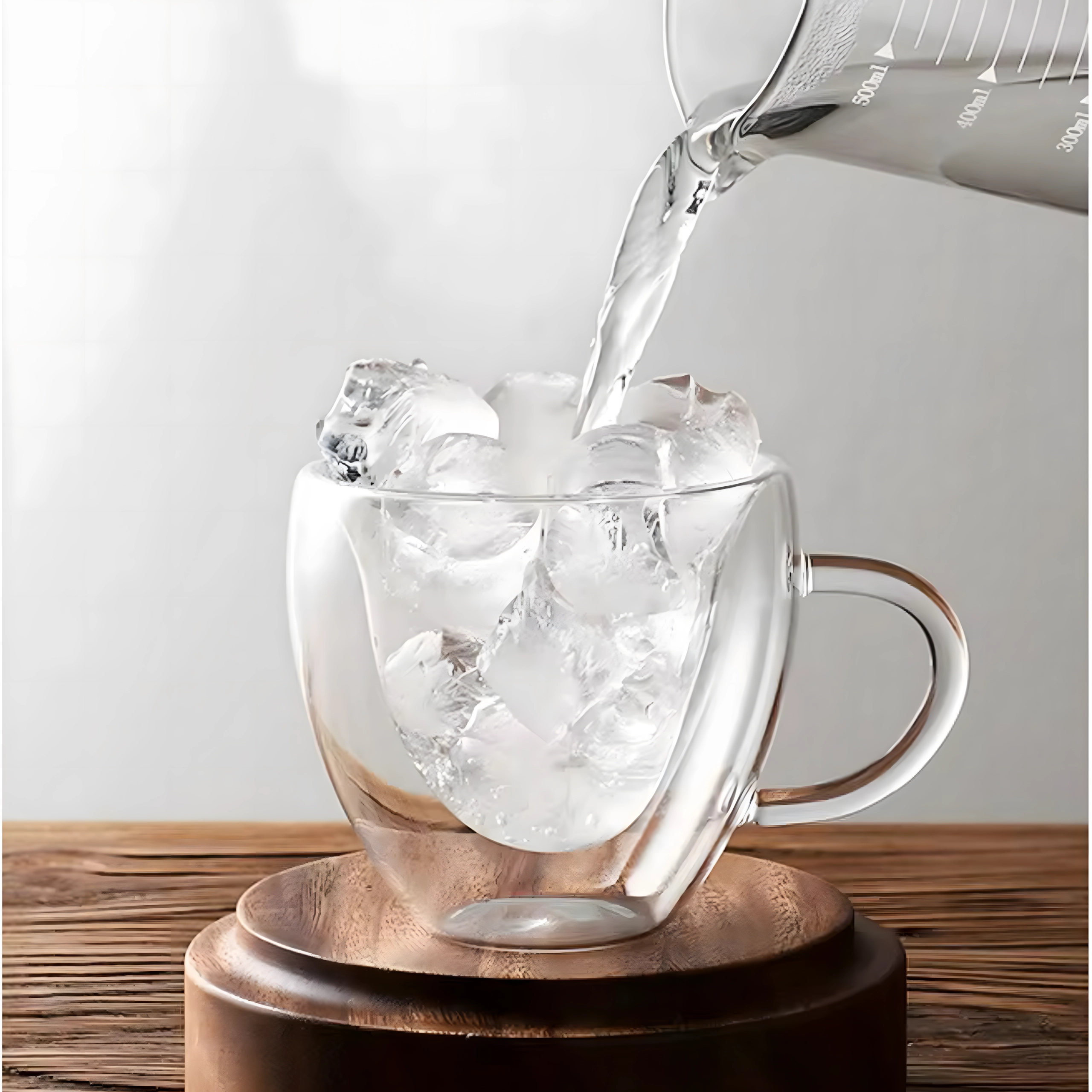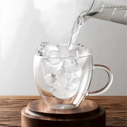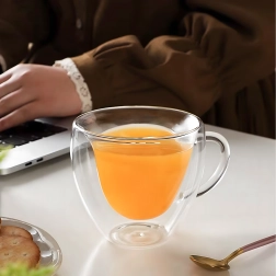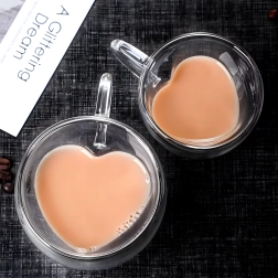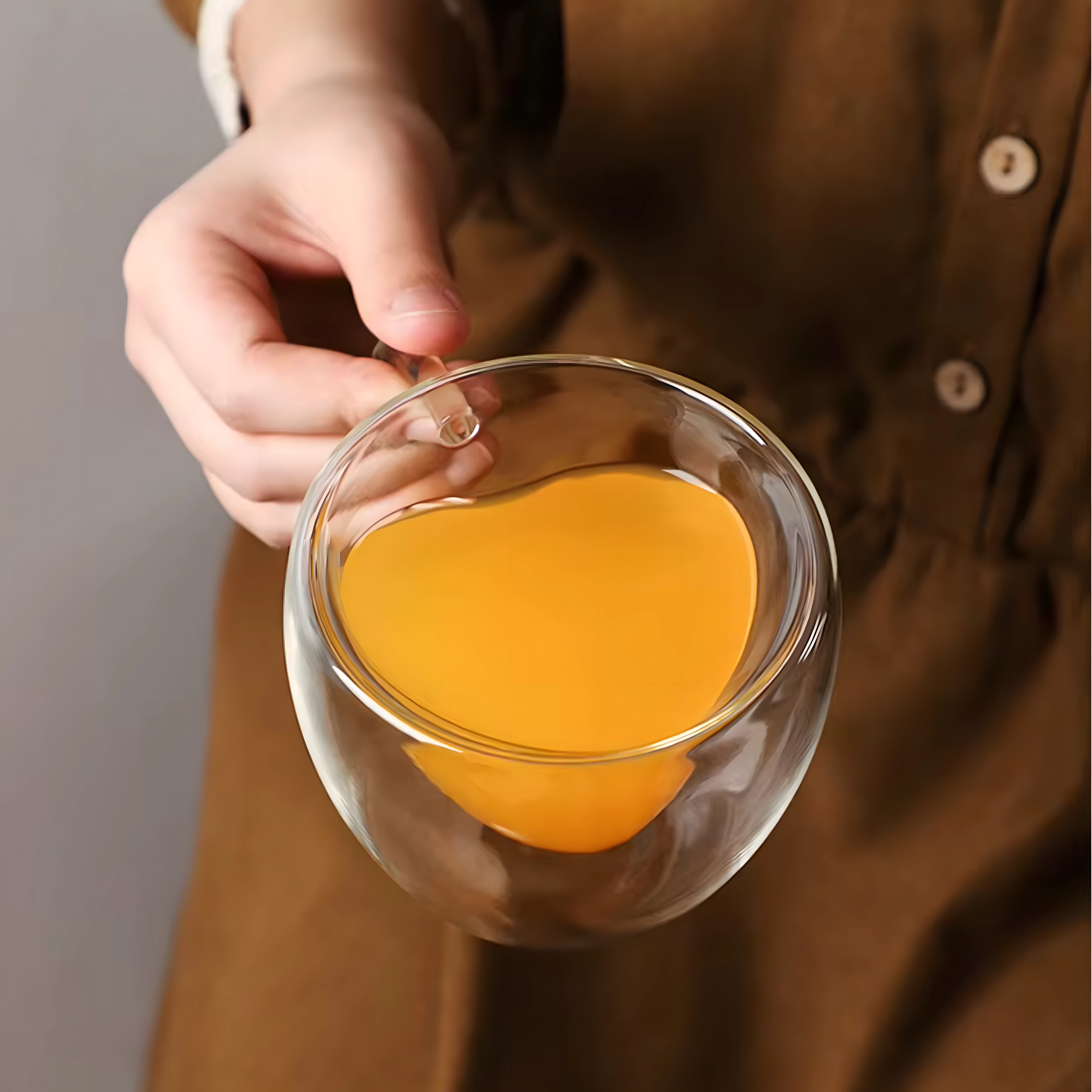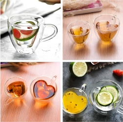 Elegante tazza in vetro a forma di cuore da 250 ml in resistente vetro borosilicato con doppia parete per una migliore isolazione termica. Perfetta per caffè caldo, tè aromatico, bevande fredde e dessert. Grazie alla struttura isolante la bevanda mantiene la temperatura più a lungo, mentre la parete esterna rimane piacevolmente fresca per una presa sicura.