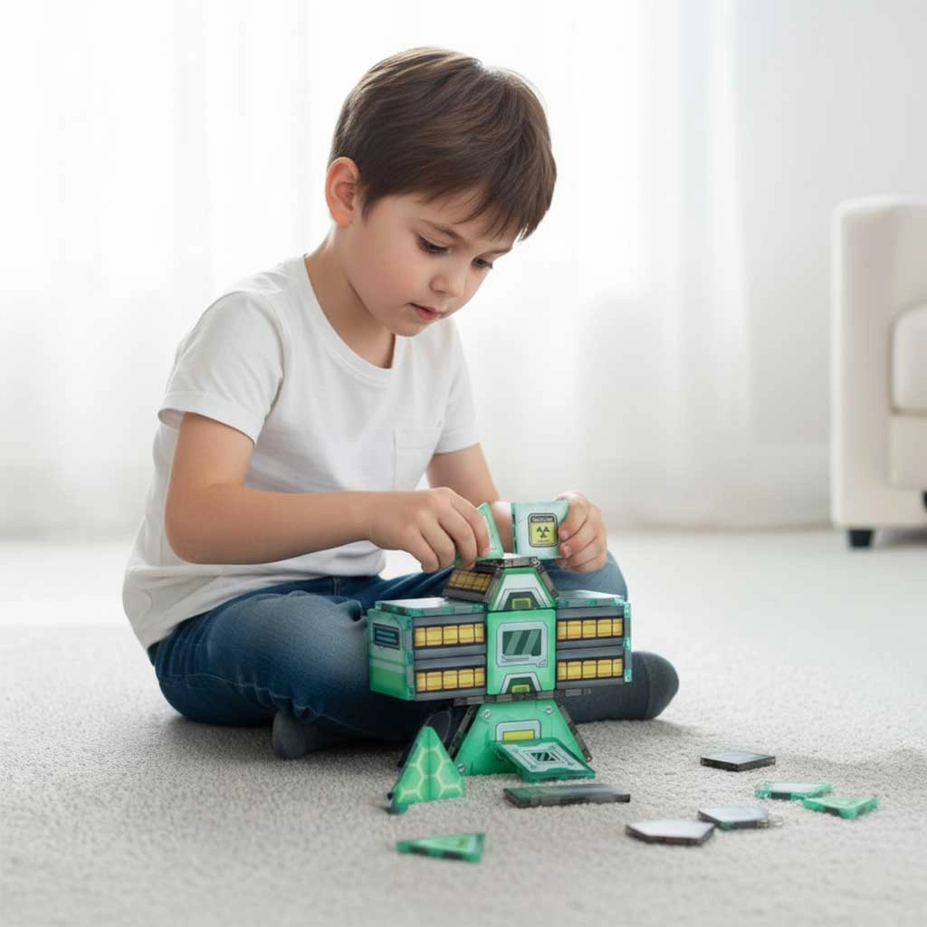 Questo set di costruzioni magnetiche in stile spaziale offre a bambini e adulti ore di divertimento e apprendimento intelligente. I pezzi in varie forme geometriche si combinano liberamente per costruire stazioni, veicoli, robot e originali mosaici. I pannelli traslucidi con stampe di segnali di avviso e dettagli sci‑fi amplificano il gioco di fantasia e ispirano storie tutte loro.